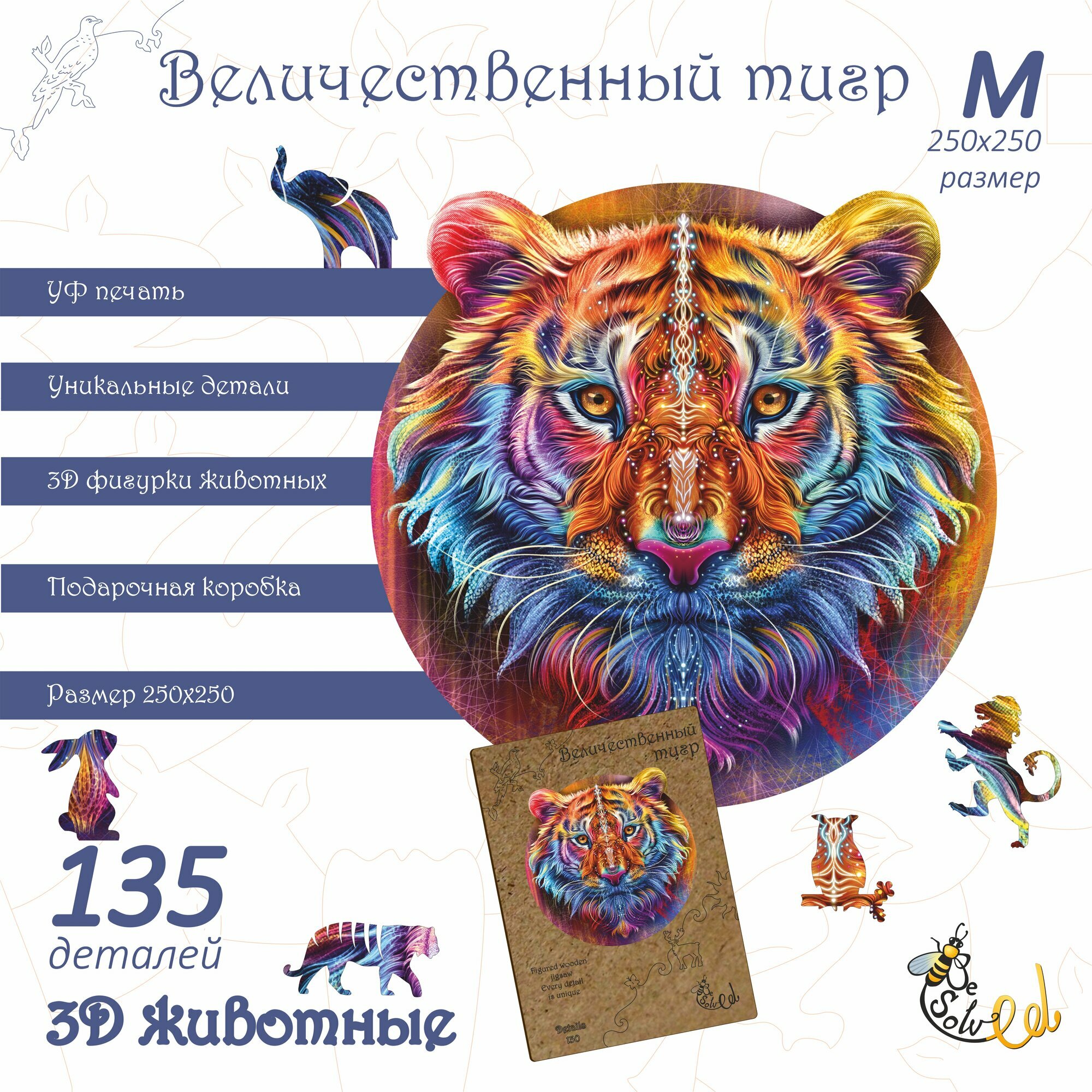 | Дополнительная информация | Фигурный деревянный пазл с деталями в виде животных |