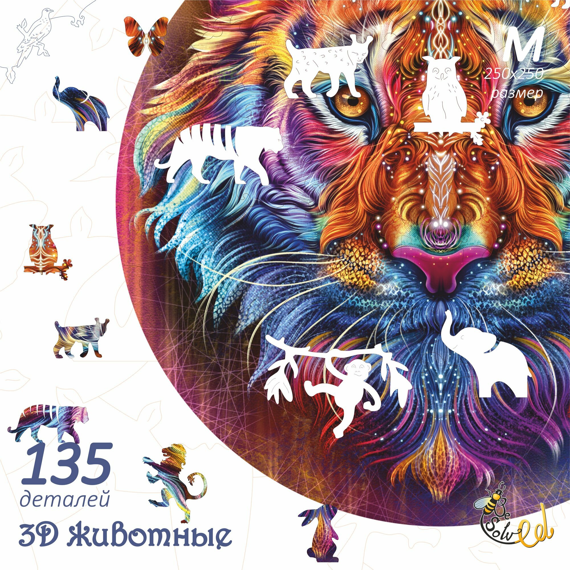 "Огненный Лев" - деревянный пазл для детей и взрослых, 135 элементов в форме животных