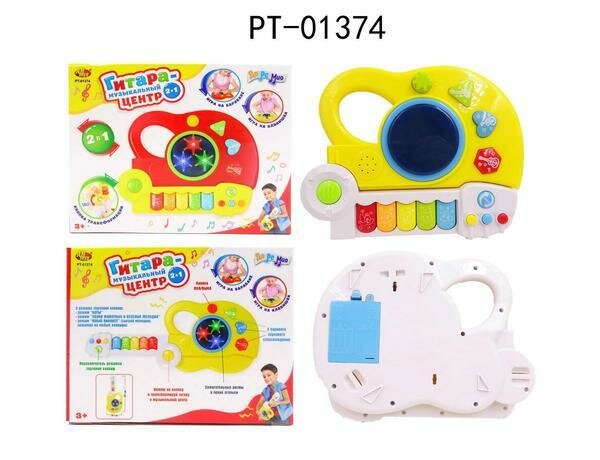 Игрушка для малышей. Гитара и музыкальный центр, 2в1, со световыми и звуковыми эффектами. PT-01374