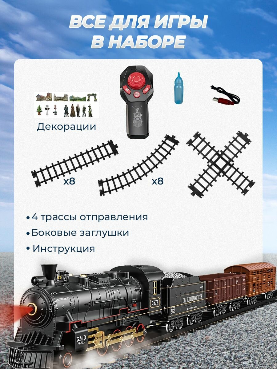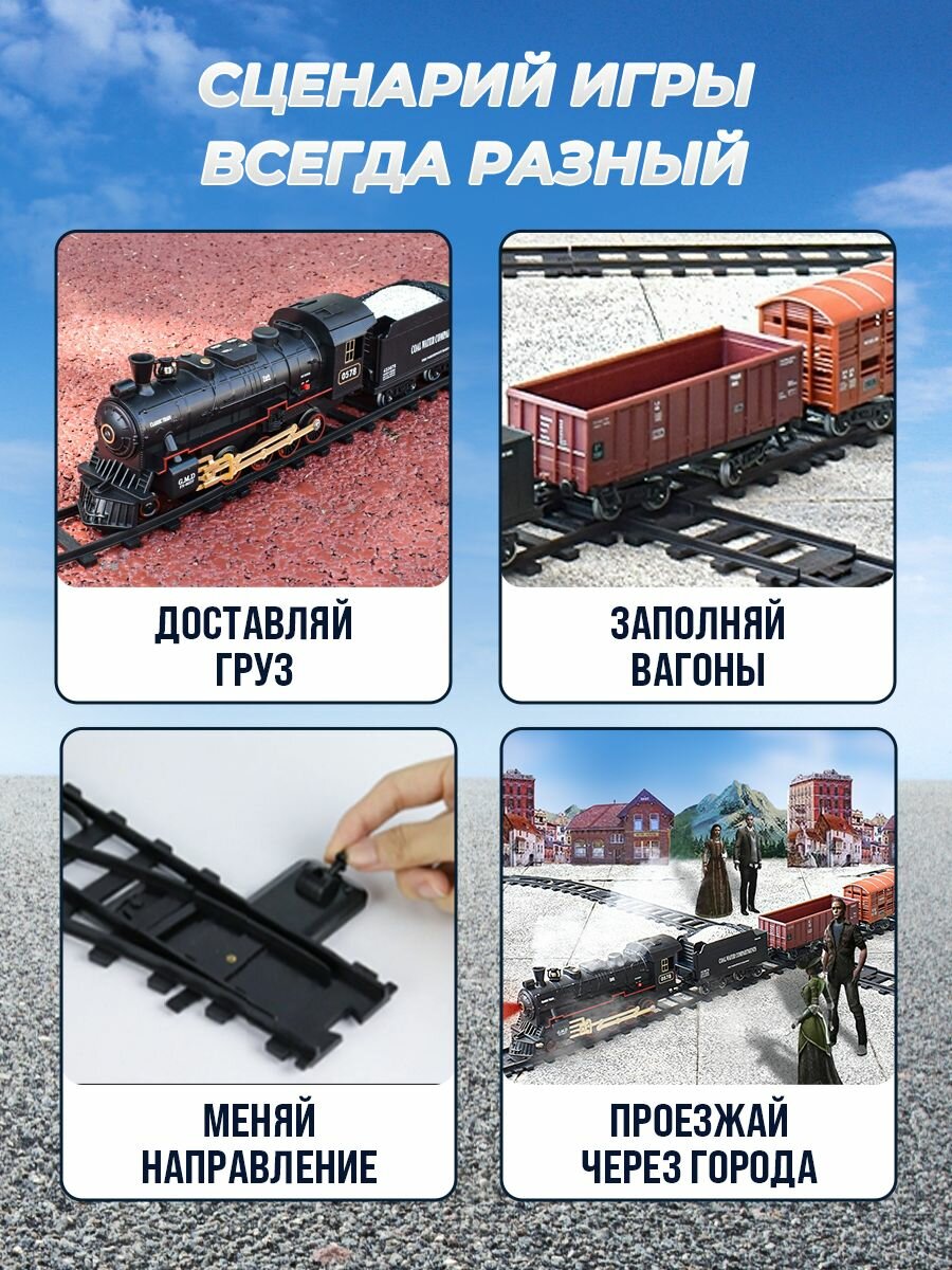 Игрушка - железная дорога и поезд с вагонами и машинками
