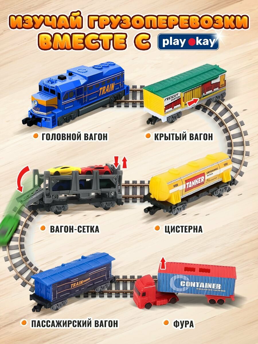 Купить Игрушка - железная дорога и поезд с вагонами и машинками