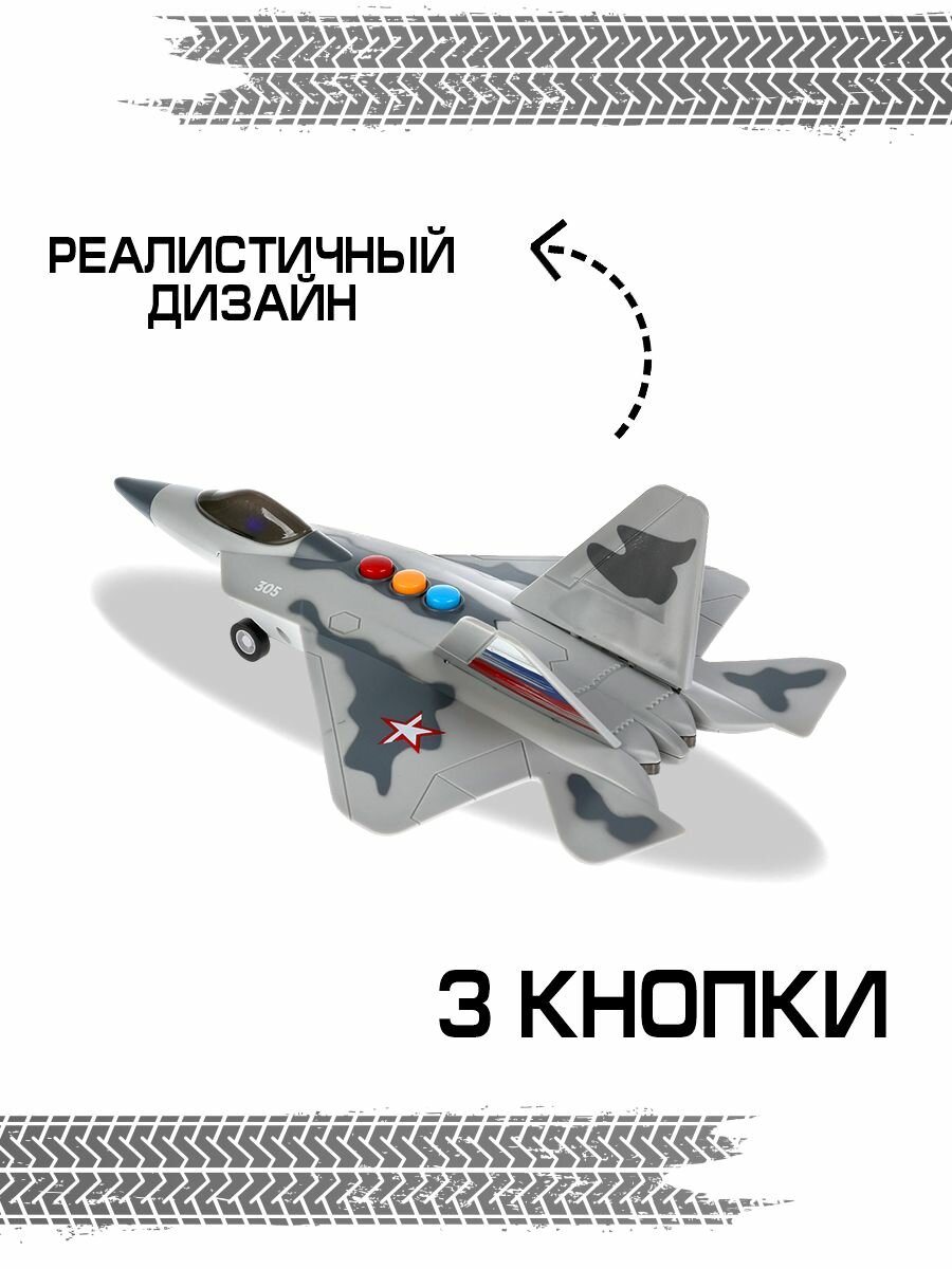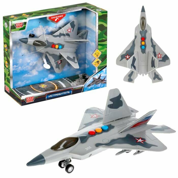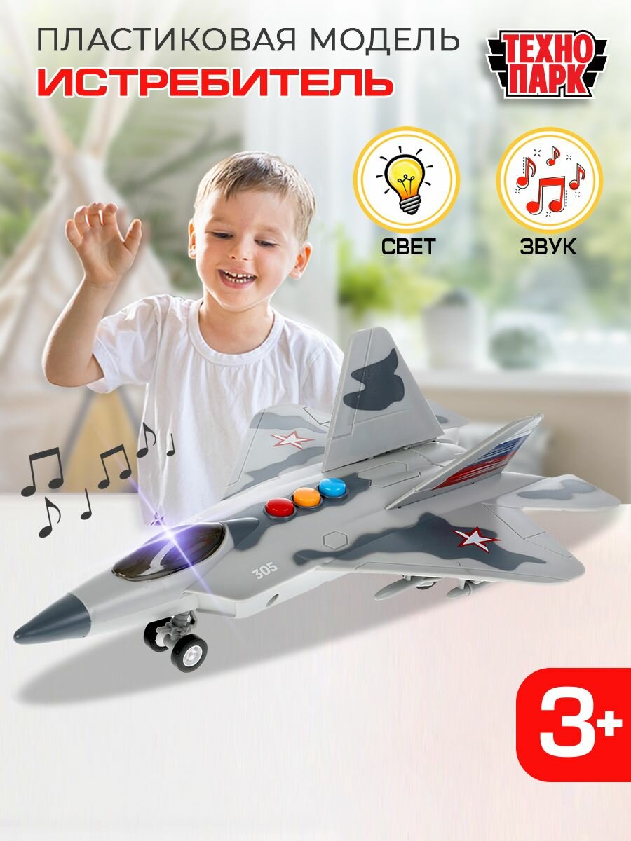 Технопарк Истребитель 26 см, 3 кнопки, свет, звук, пластик ZY1006390-R с 3 лет