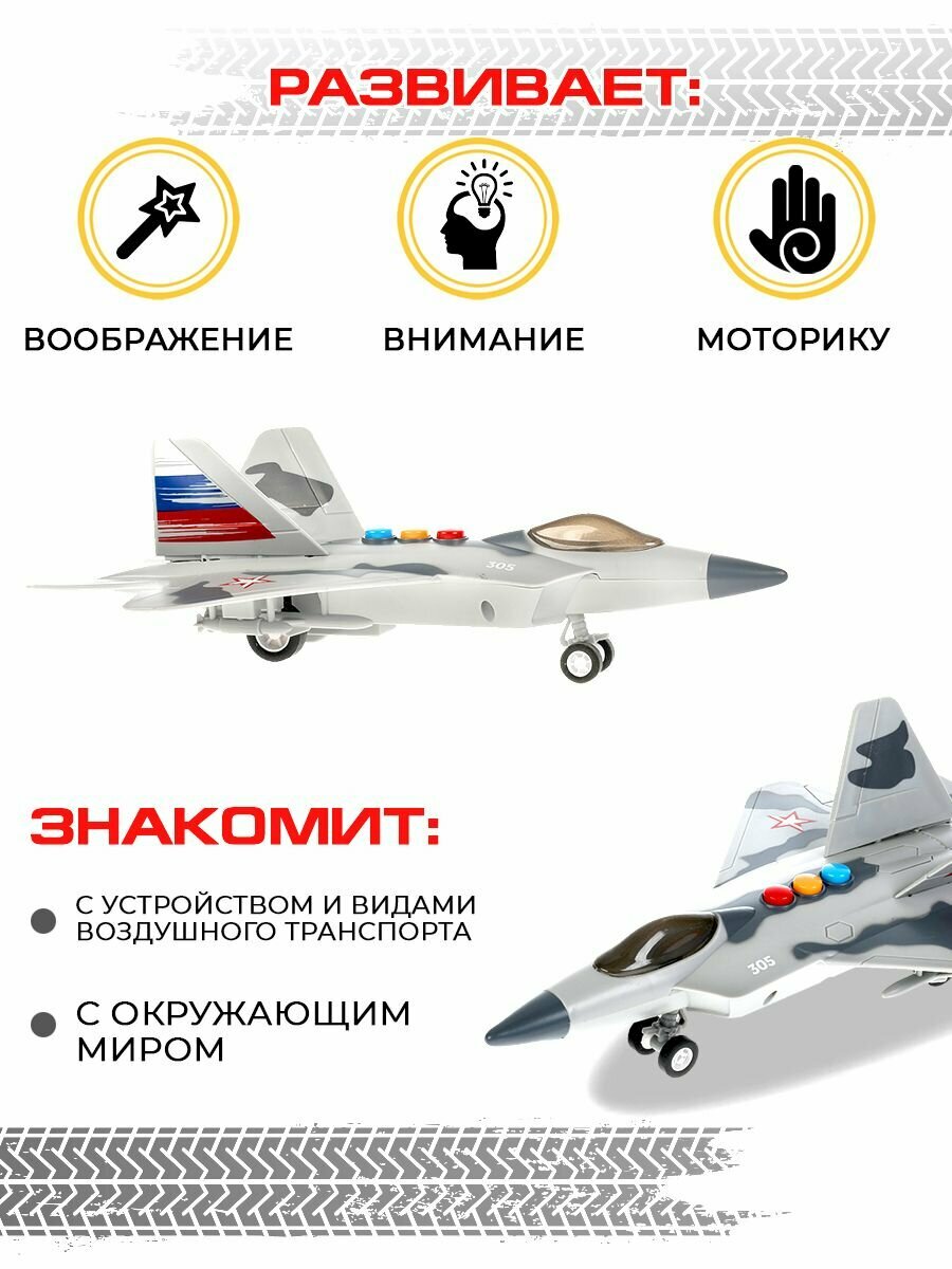 Модель самолета Технопарк Истребитель в зимнем камуфляже, инерционная, свет, звук ZY1006390-R