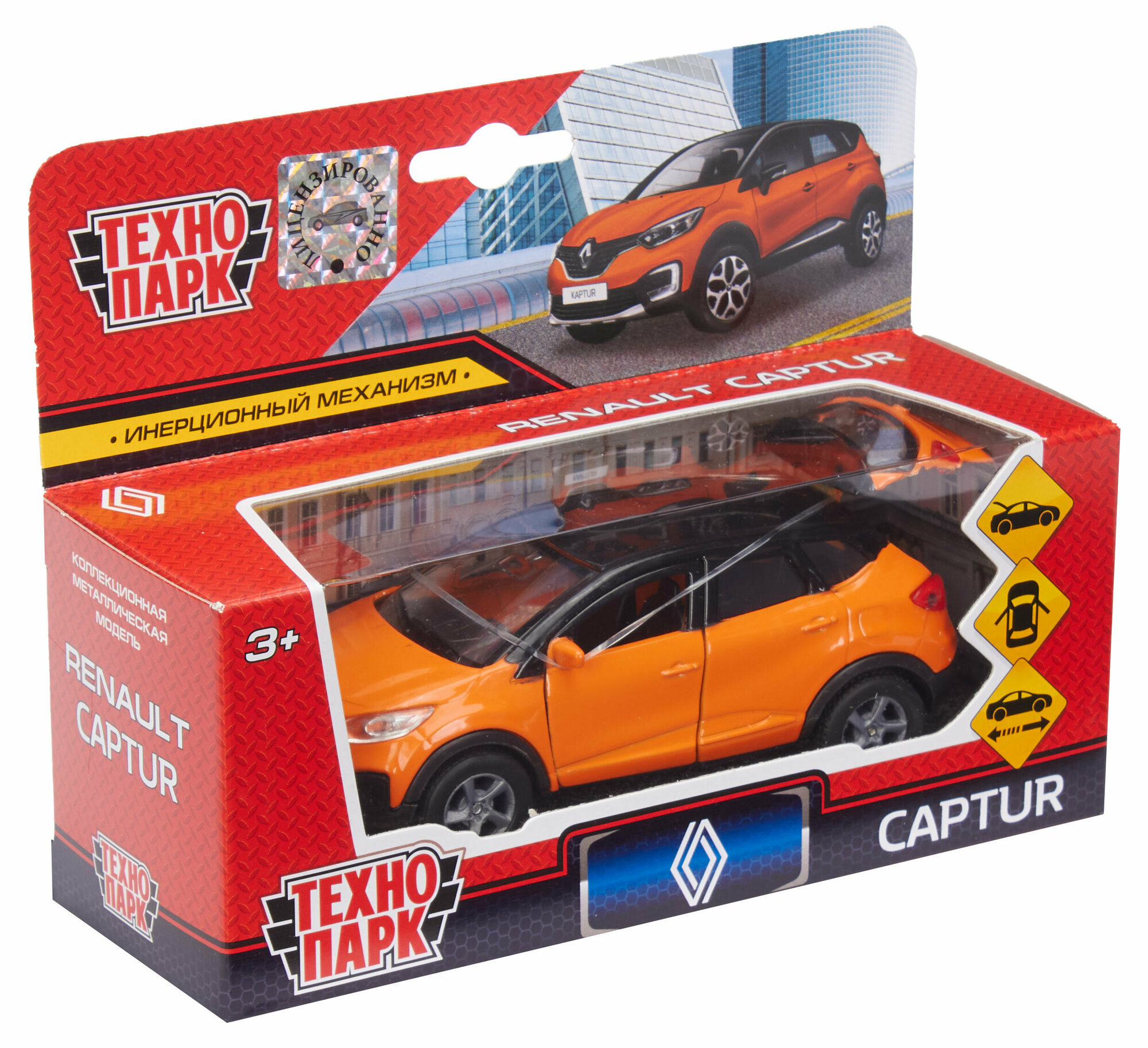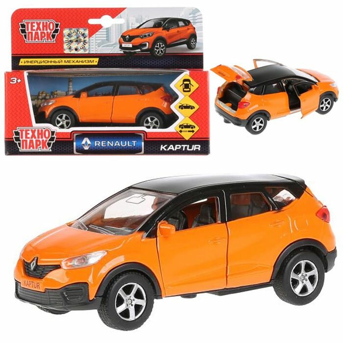 Модель Инерционная Технопарк Renault Kaptur (12см, металл, открываются двери, оранжево-черный, в коробке) SB-18-20-RK1-WB, (Shantou City Daxiang Plastic Toy Products Co., Ltd)