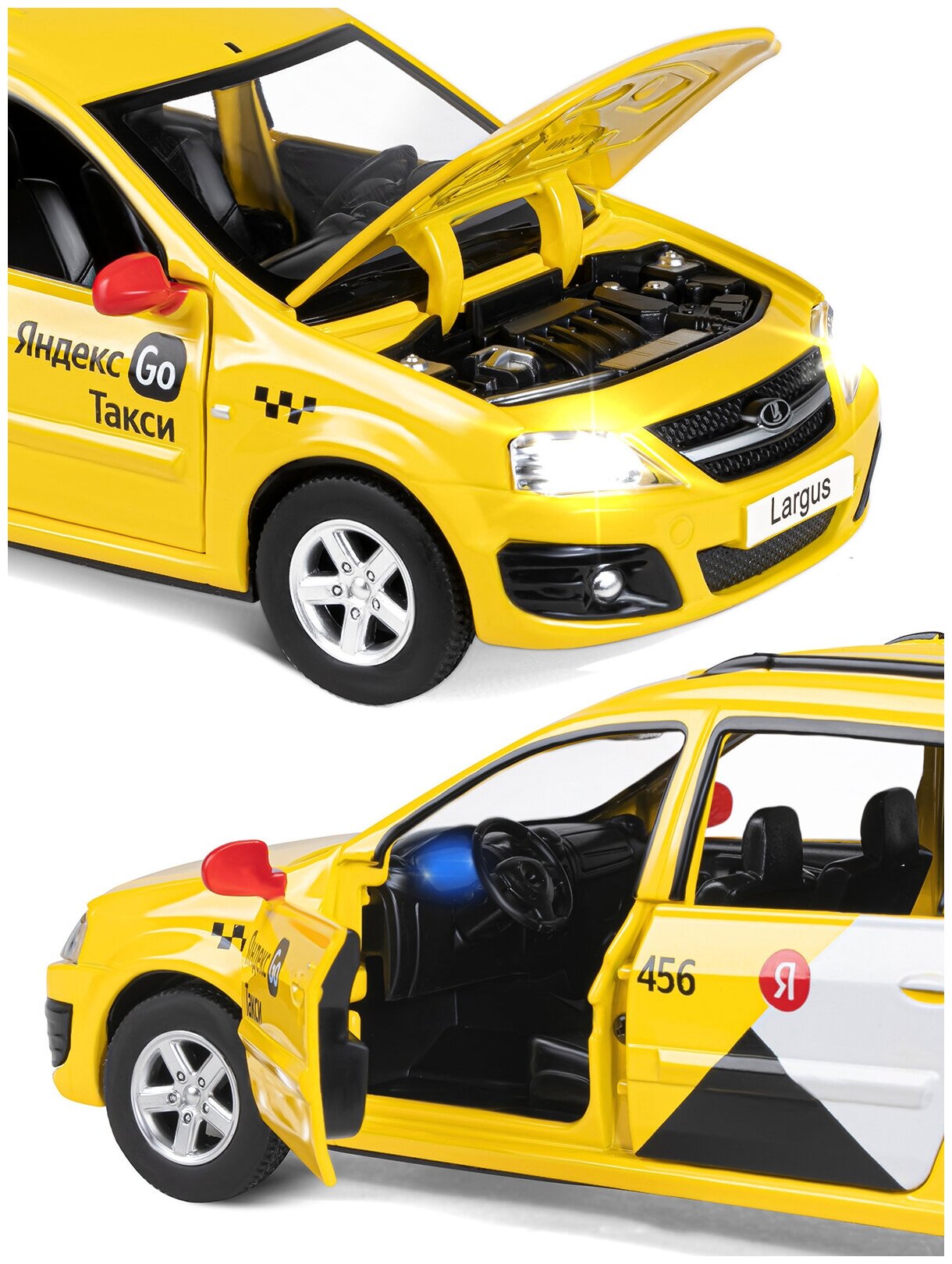 Машинка металлическая инерционная Яндекс Go озвучено Алисой, LADA LARGUS, М1:24, свет, звук, желтый, JB1251481