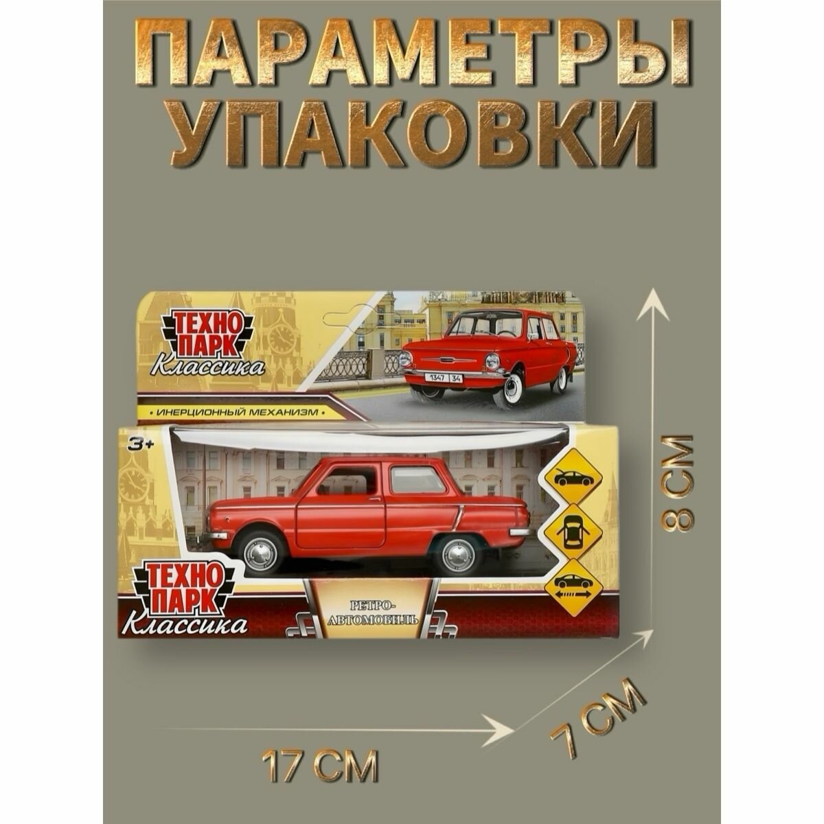 | Особенности | батарейки в комплекте / детская / коллекционная / крутится руль / открывается капот/багажник / открываются дверцы / советские машинки / звук / свет |