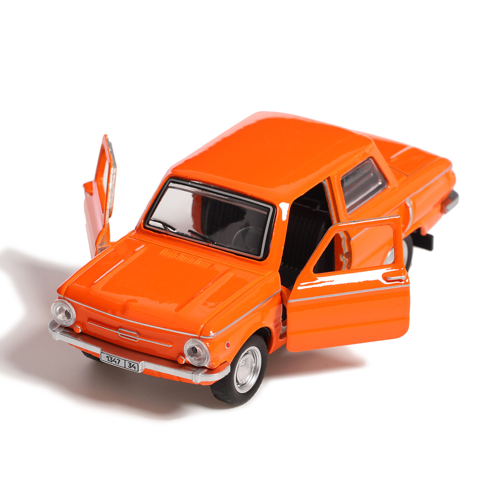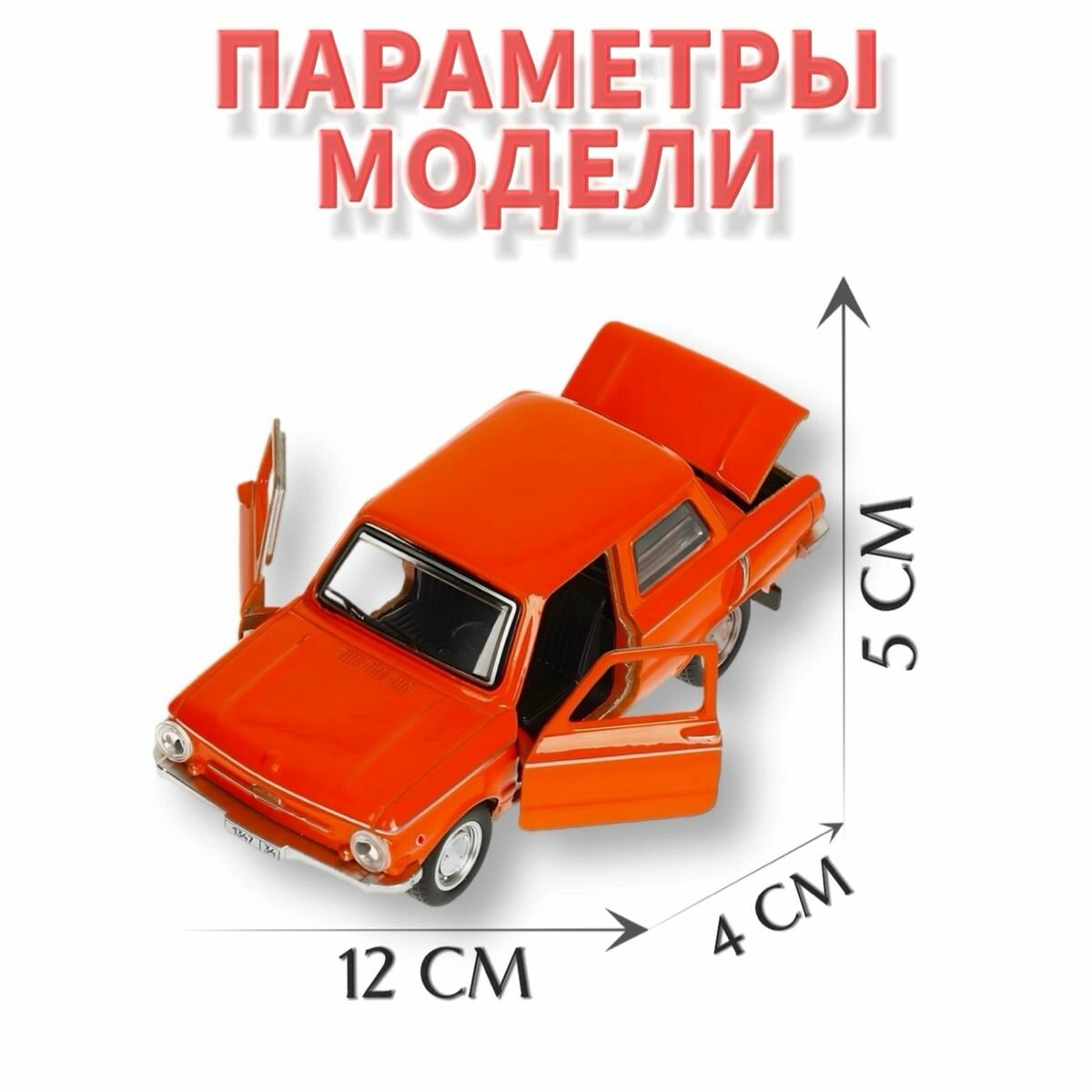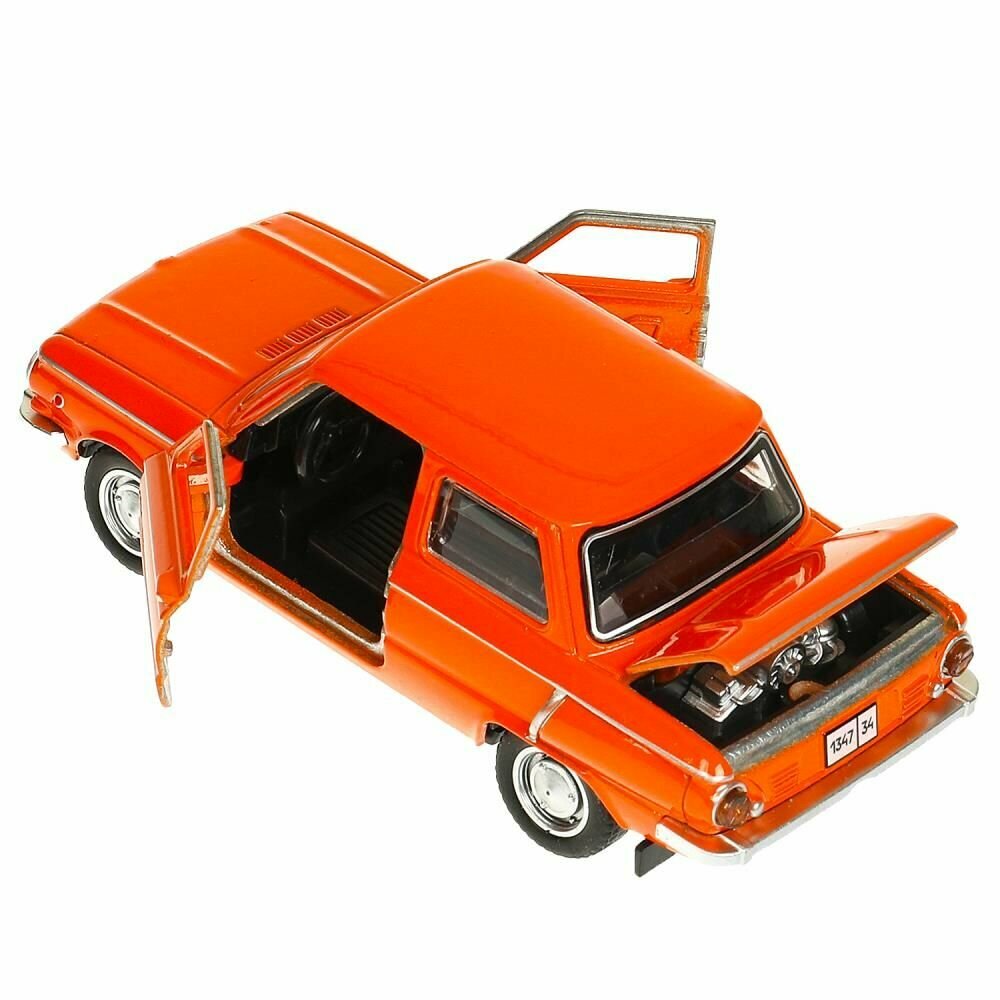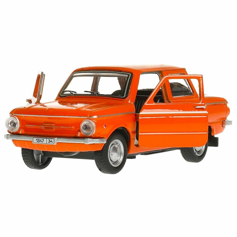 Машинка детская Запорожец ЗАЗ-968А 12 см, Технопарк, оранжевая, открываются двери и багажник