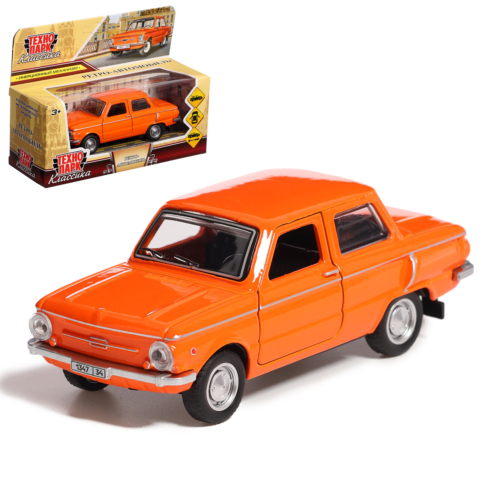 Машина металлический инерционный ЗАЗ-968А запорожец 12 см Цвет Оранжевый технопарк ZAZ968A-12-OG