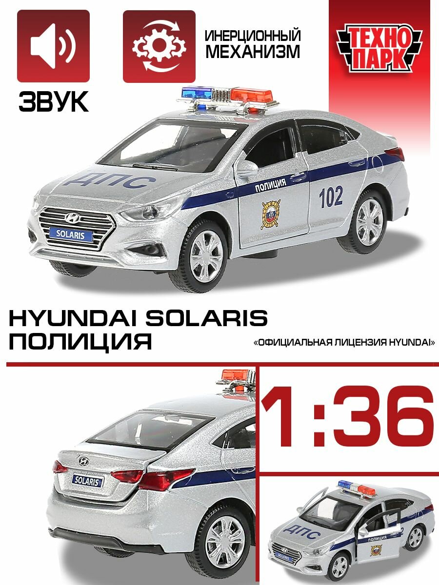 Модель машины Технопарк Hyundai Solaris Полиция, инерционная, свет, звук SОLАRIS2-12SLРОL-SR интересное: