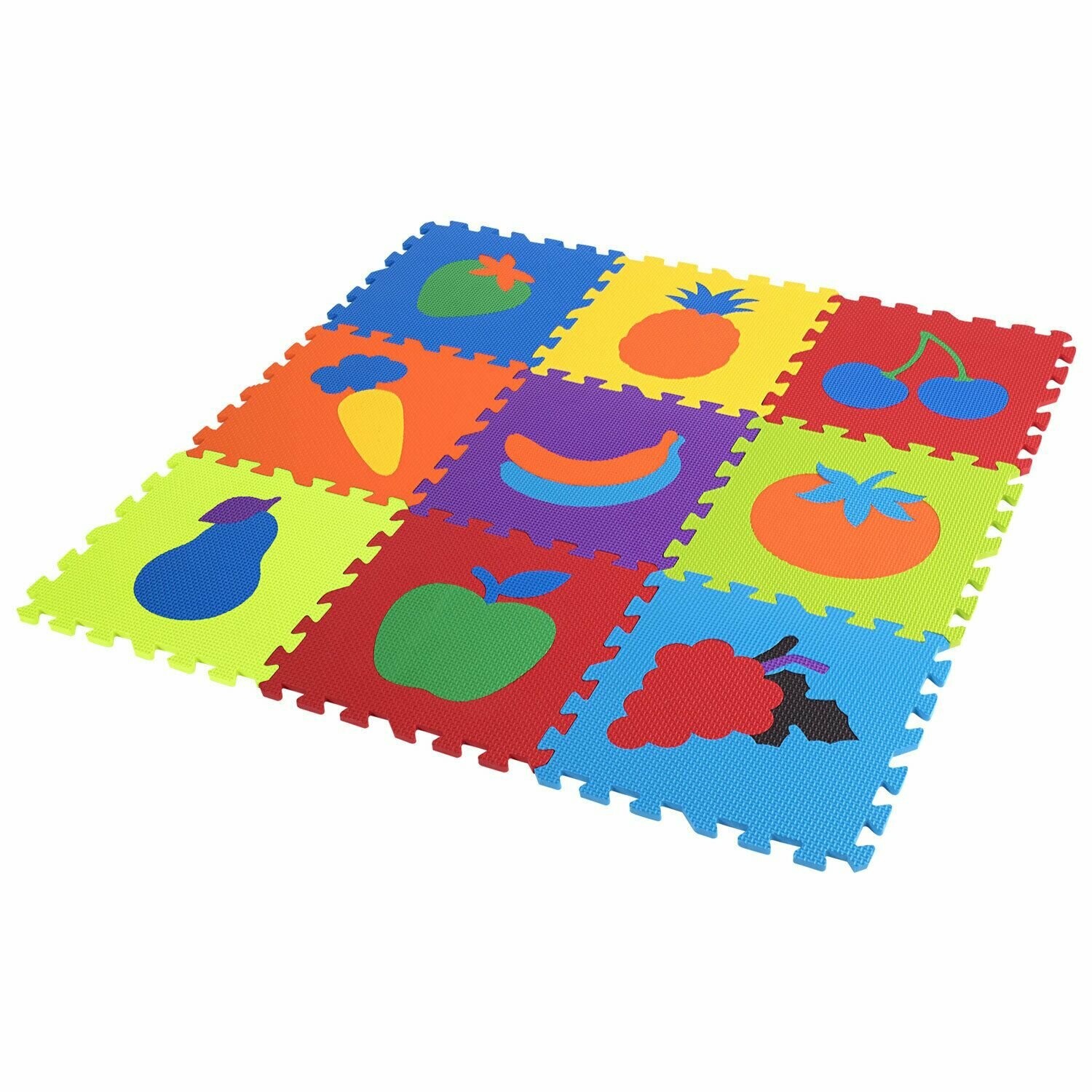 Коврик-пазл напольный 0,9х0,9 м мягкий "Фрукты-овощи", 9 частей 30х30 см, толщина 1 см, юнландия, 664665 интересное: