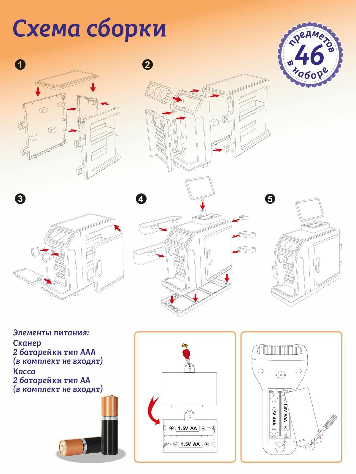 Игровой набор Супермаркет "Первая покупка" ТМ Джамбо Тойз, сканер/терминал/деньги, 46 предметов, свет/звук, JB0211656 интересное: