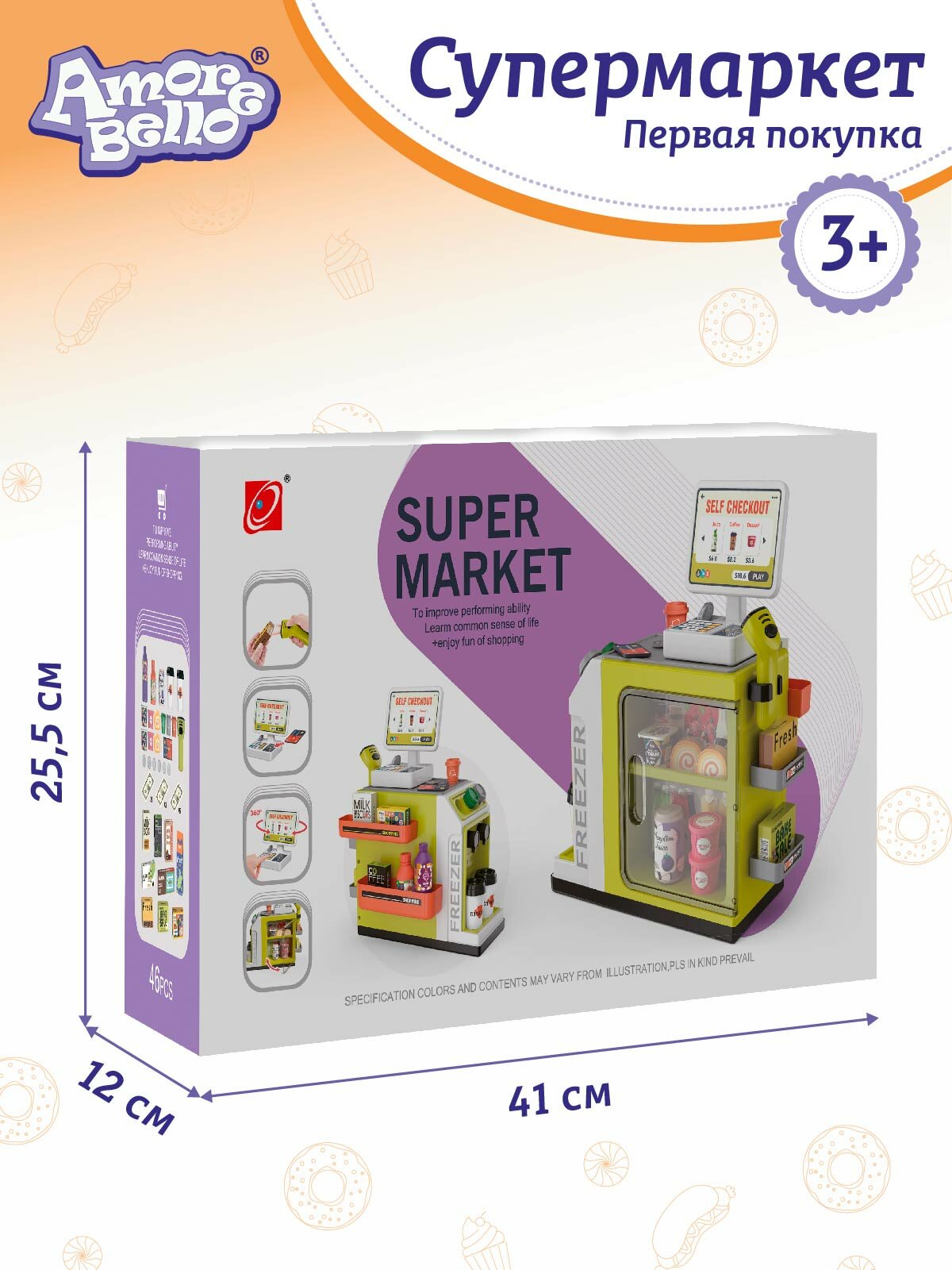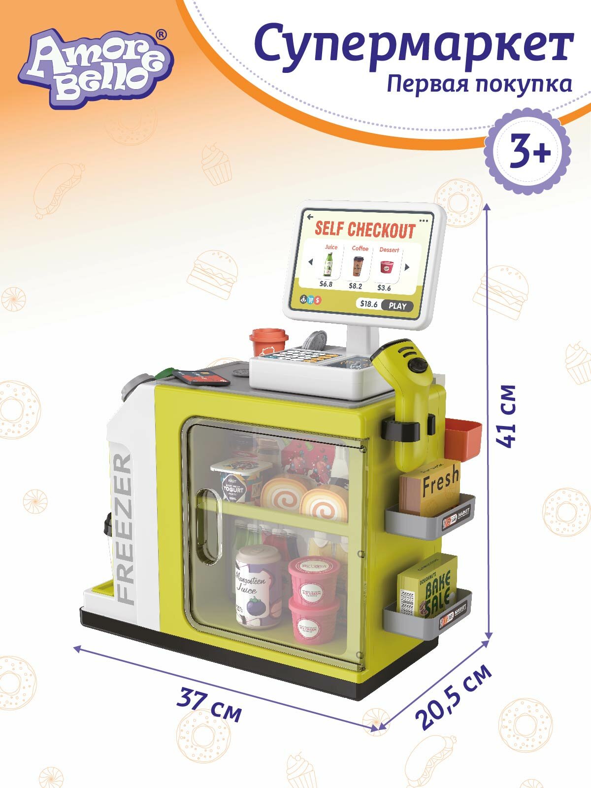 Игровой набор Супермаркет "Первая покупка" от ТМ Amore Bello, сканер/терминал/деньги, 46 предметов, свет/звук, JB0211657