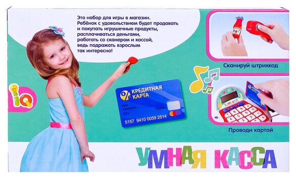 | Комплектация | кассовый аппарат / муляжи продуктов питания / бумажные банкноты и монеты (имитация) / банковские карты (имитация) |