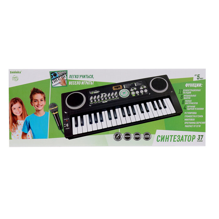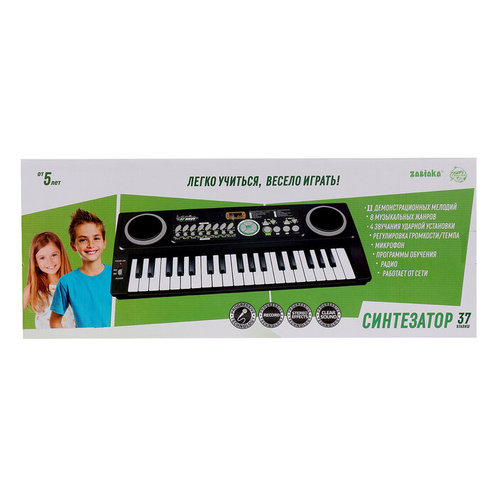 Синтезатор ZABIAKA "Супер музыкант", с микрофоном и блоком питания, 37 клавиш (3797799)