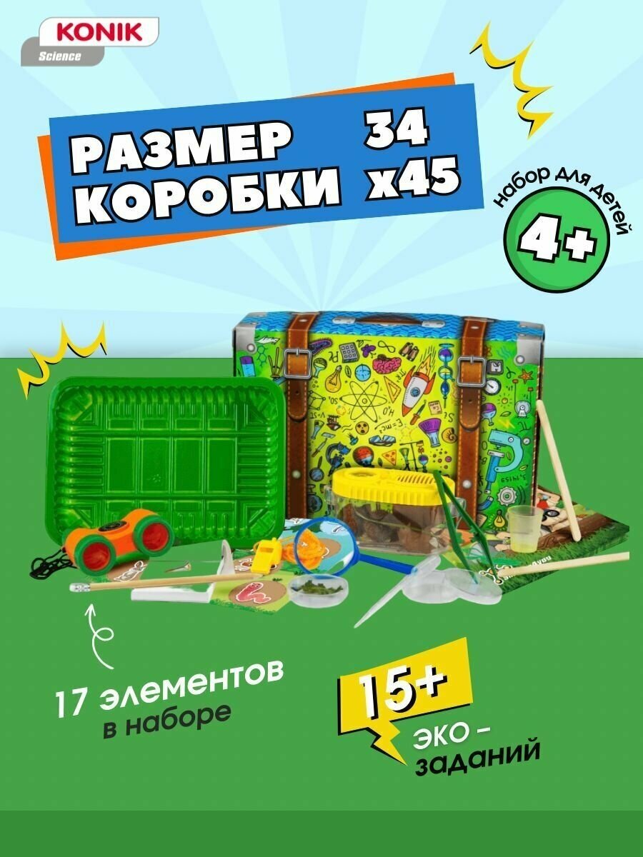 Набор Для Опытов KONIK Science Исследователь природы (15 эко-заданий, 17 элементов, обучающий буклет, в коробке, от 4 лет), (Science4You S.A.)