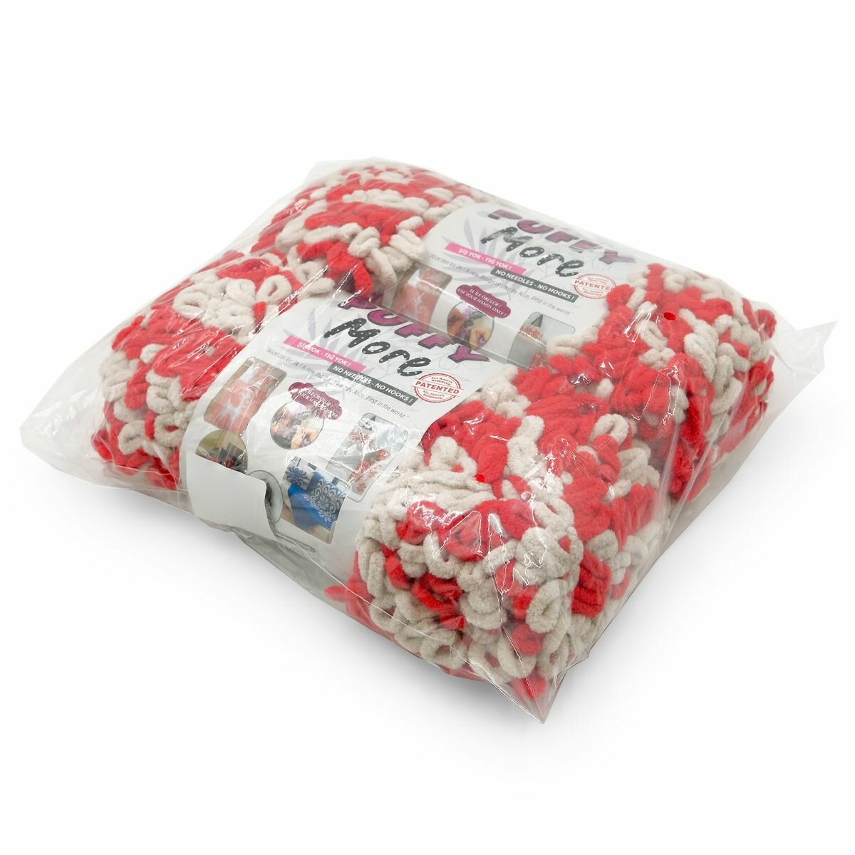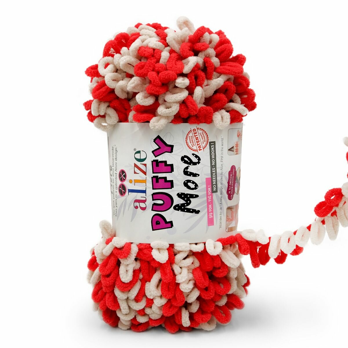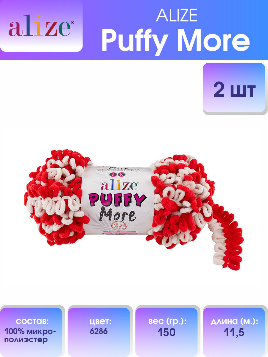 Купить Пряжа Puffy MORE (Alize), алый/белый - 6286, 100% микрополиэстер, 2 мотка, 150 г., 11,5 м.