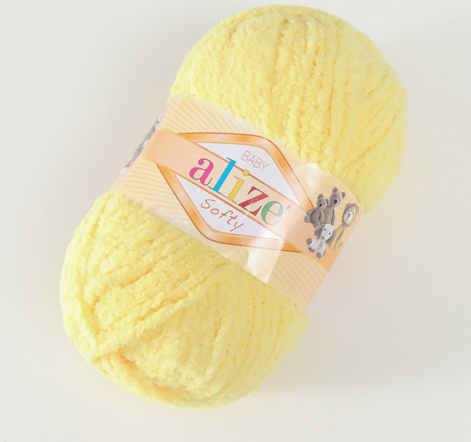 Пряжа ALIZE SOFTY, лимонный - 187, 100% микрополиэстер, 5 мотков, 50 г, 115 м.