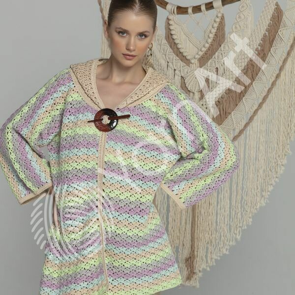 | Плотность вязания для образца 10х10 см | спицы: 14 рядов х 14 петель, крючок: 14 рядов х 10 петель |