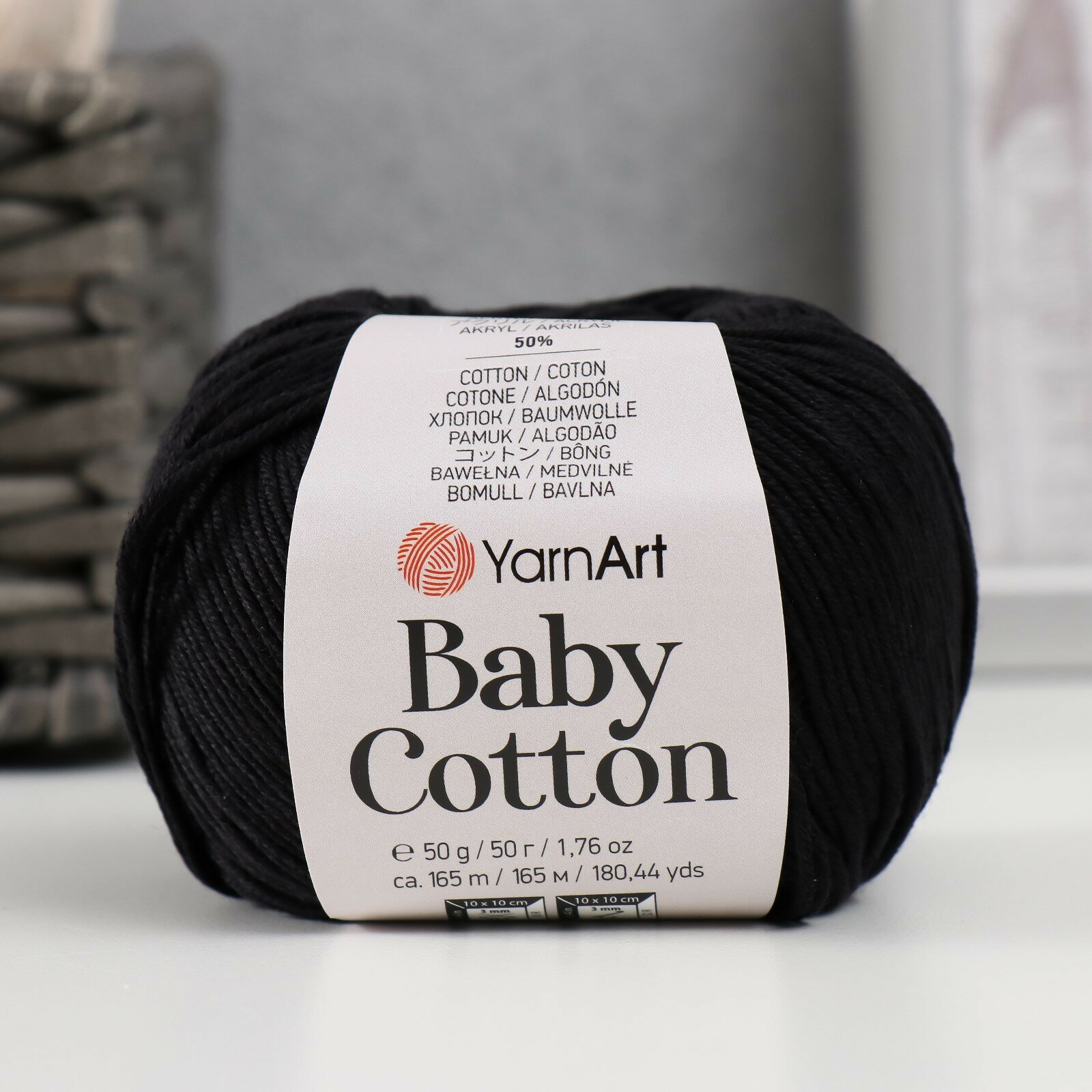 Купить Пряжа для вязания YarnArt Baby Cotton (Бэби Коттон) - 1 моток 460 черный, для детских вещей и амигуруми, 50% хлопок, 50% акрил, 165 м/50 г