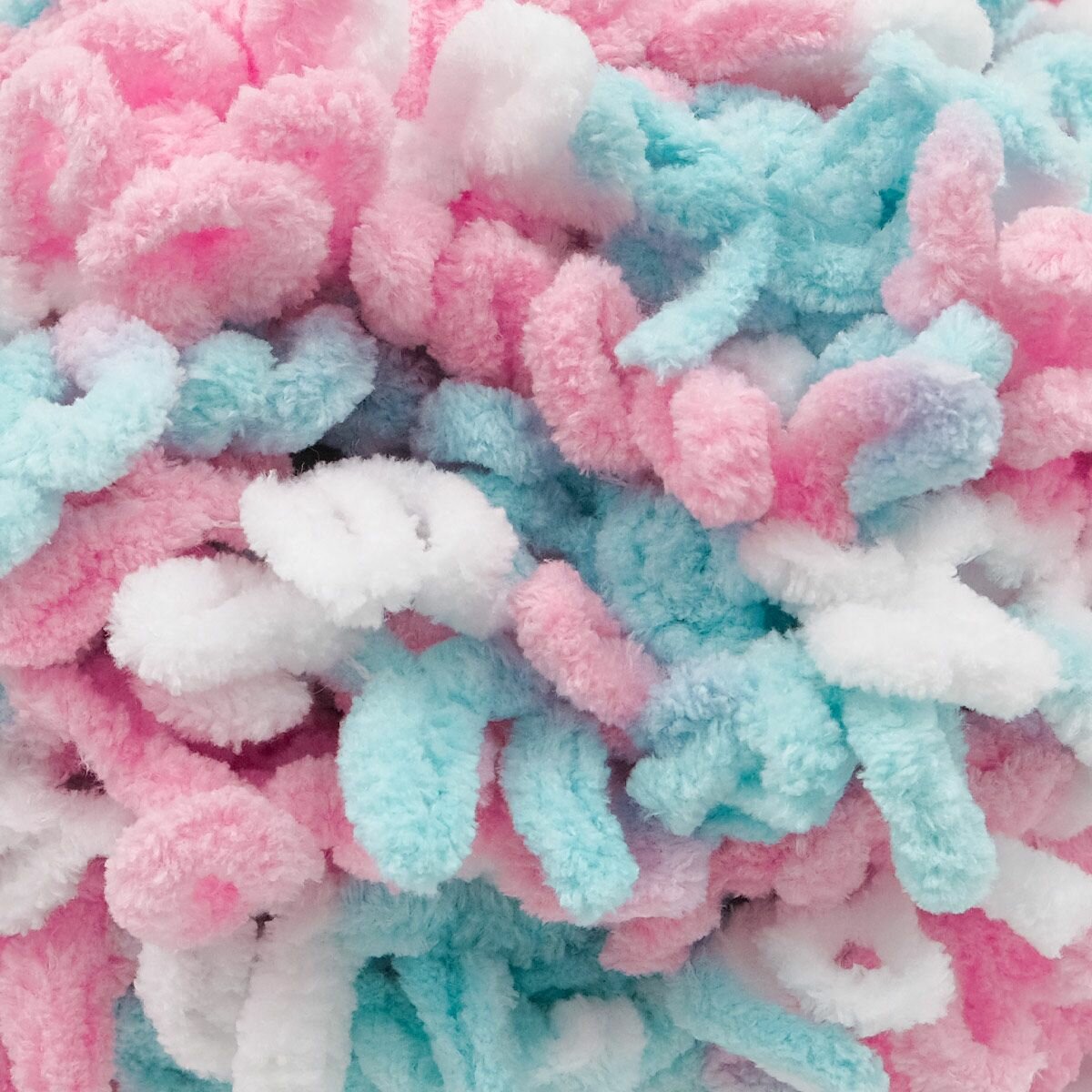 Пряжа Alize Puffy fine color белый-розовый-голубой (5945), 100%микрополиэстер, 14.5м, 100г, 5шт