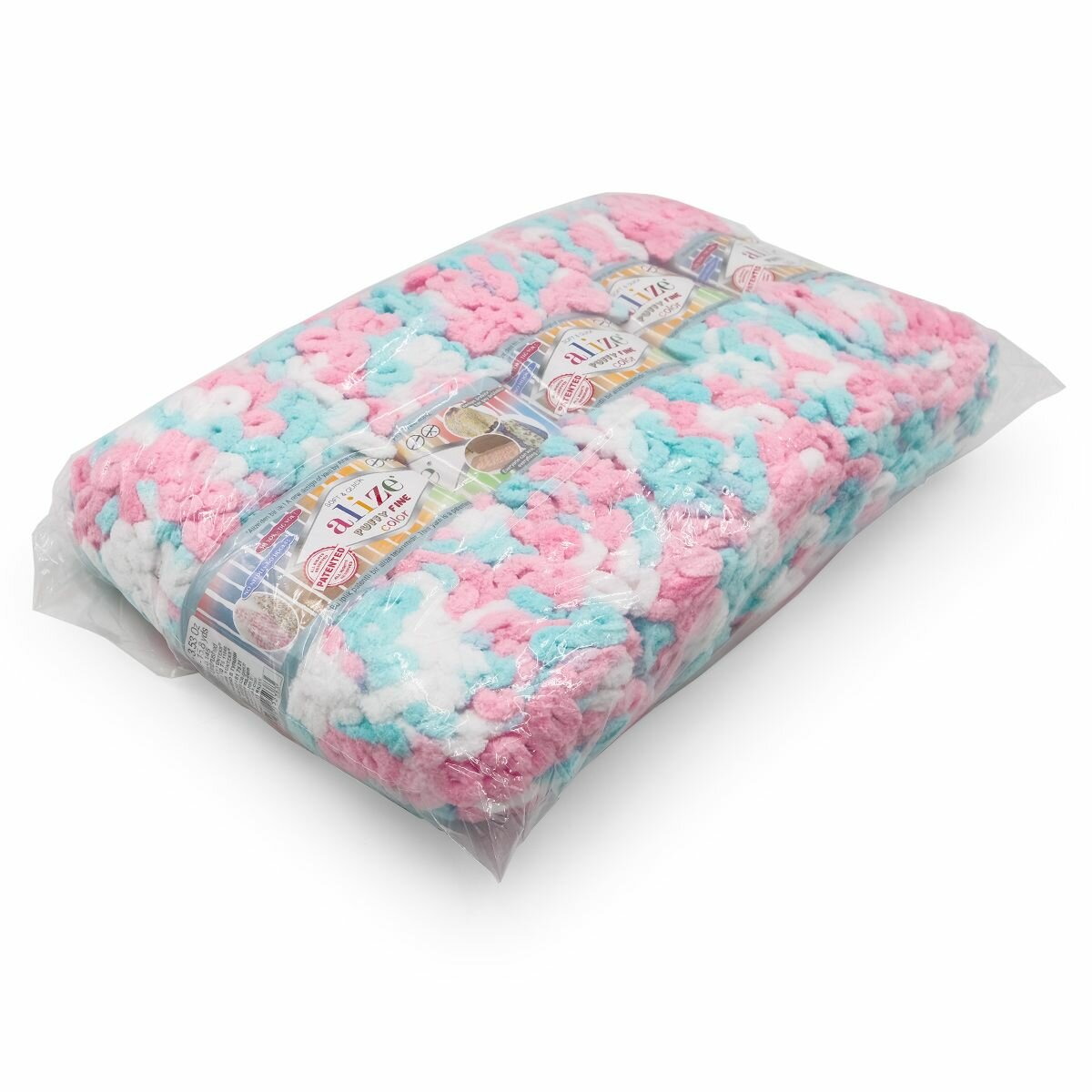 Пряжа Alize Puffy Fine Color (Пуффи Файн Колор) - 1 моток Цвет: 6377 бирюзовый, розовый, белый 100% микрополиэстер 100г 14м