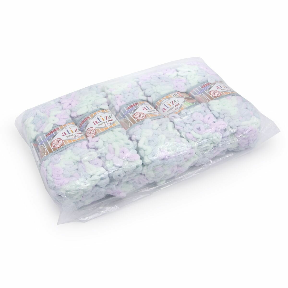 Пряжа Alize Puffy fine color белый-розовый-синий-мятный (6245), 100%микрополиэстер, 14.5м, 100г, 1шт