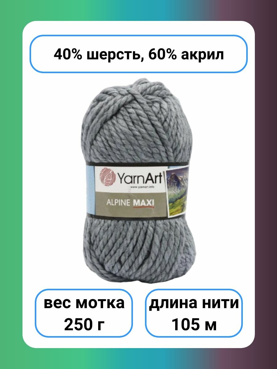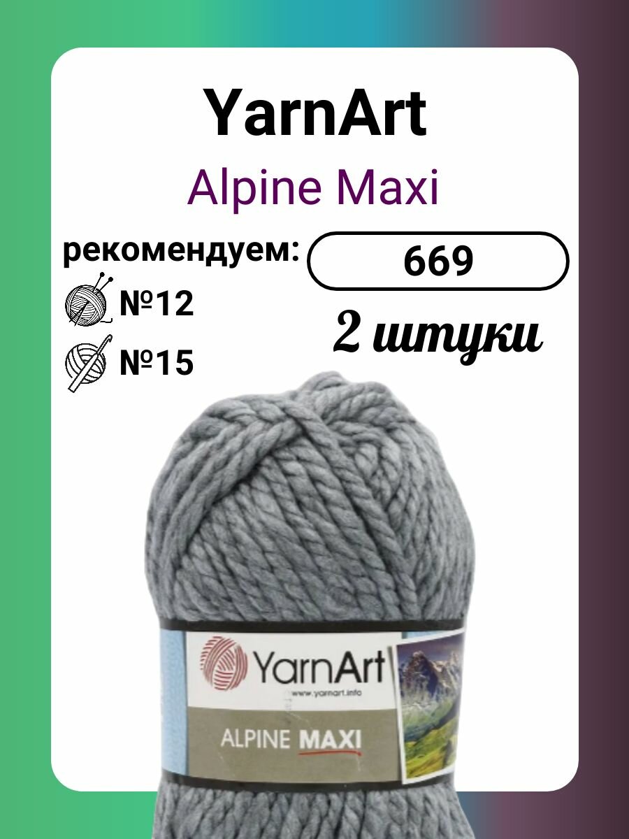 Купить Пряжа для вязания YarnArt 'Alpine Maxi', 250г, 105м (40% шерсть, 60% акрил) (669 серый), 2 мотка