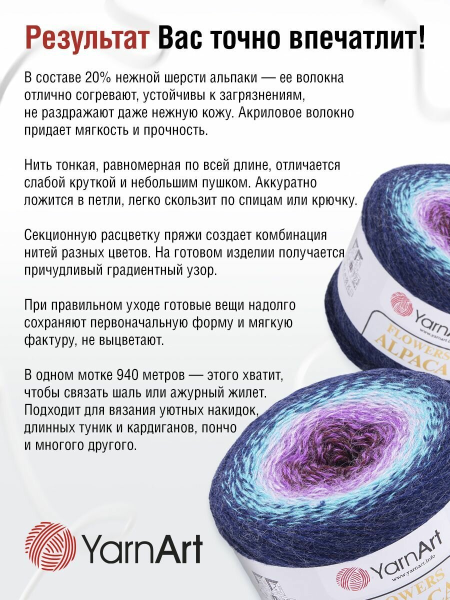 СохранитьПряжа для вязания YarnArt 'Flowers Alpaca' 250гр 940м (20% альпака, 80% акрил) (433), 2 мотка интересное: