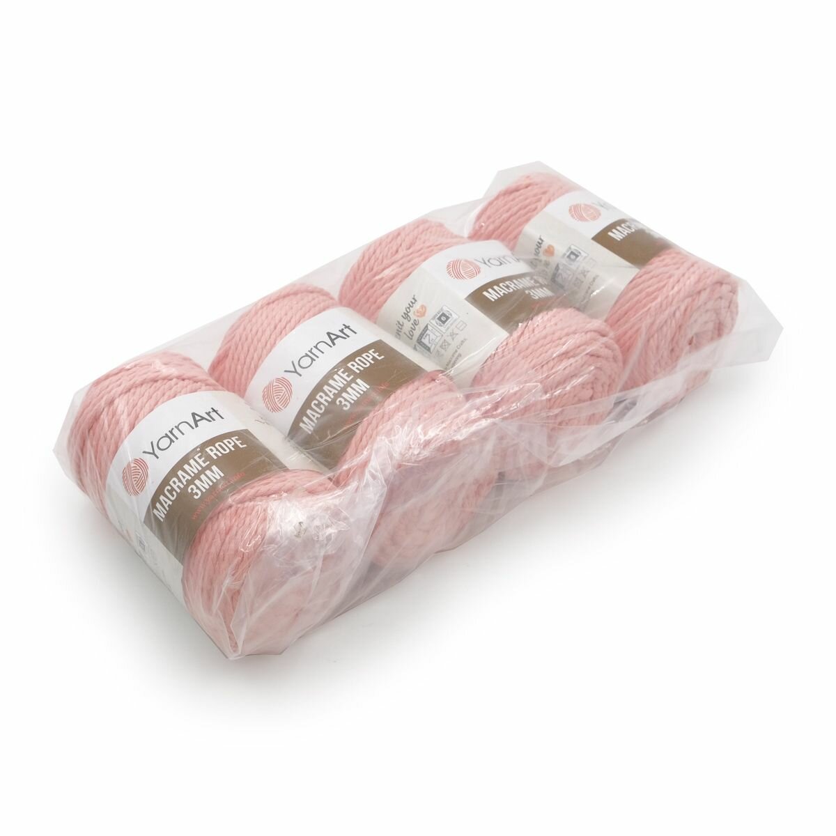 Купить Пряжа для вязания YarnArt 'Macrame Rope 3мм', 250г, 63м (60% хлопок, 40% вискоза и полиэстер) (767 светло-розовый), 4 мотка