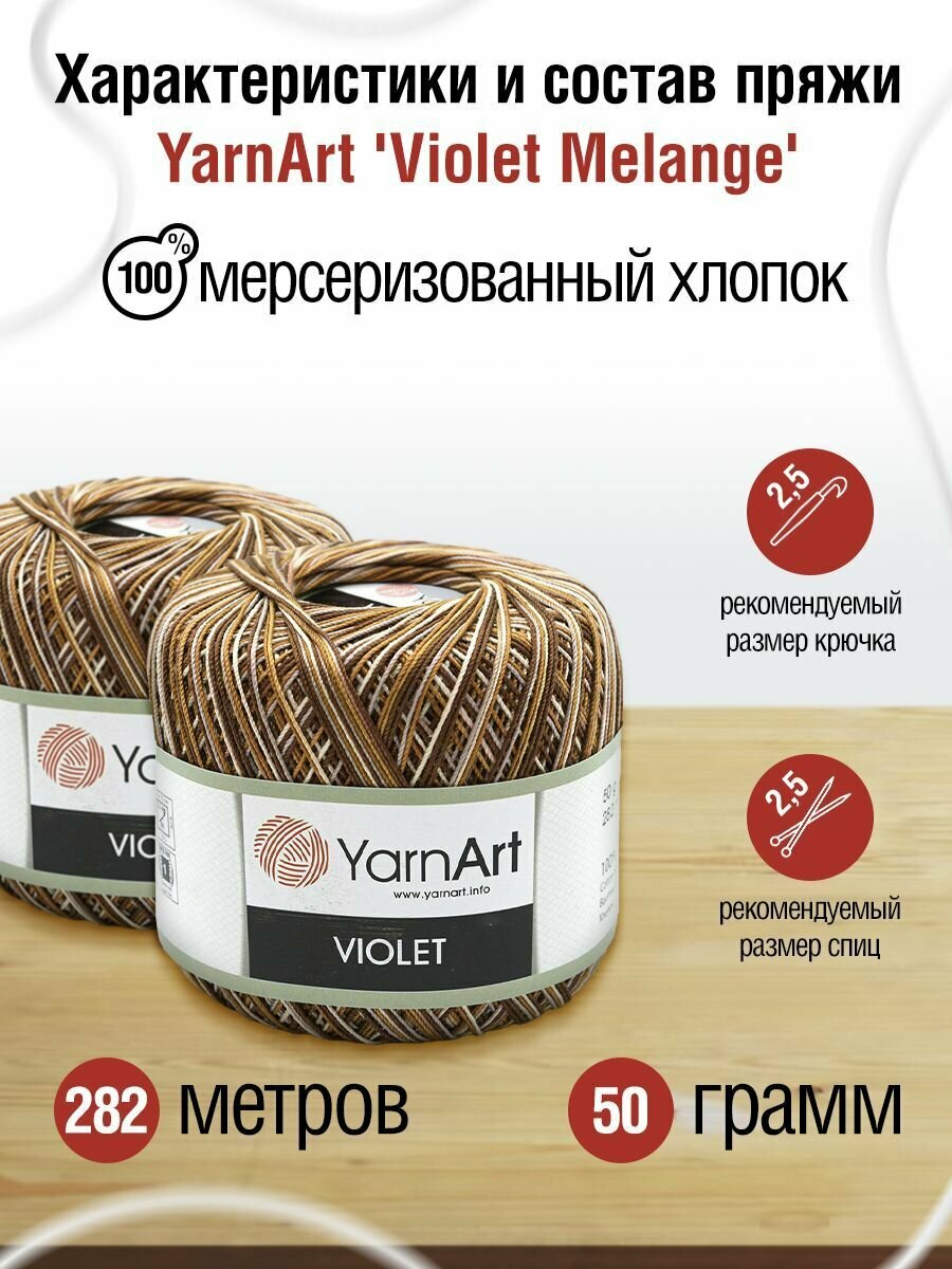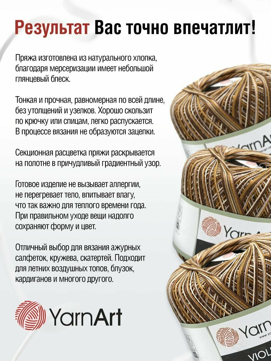 Пряжа YarnArt Violet - 1 шт, 0077 шоколад, 50г/282м, мерсеризованный хлопок 100% /ЯрнАрт Виолет/