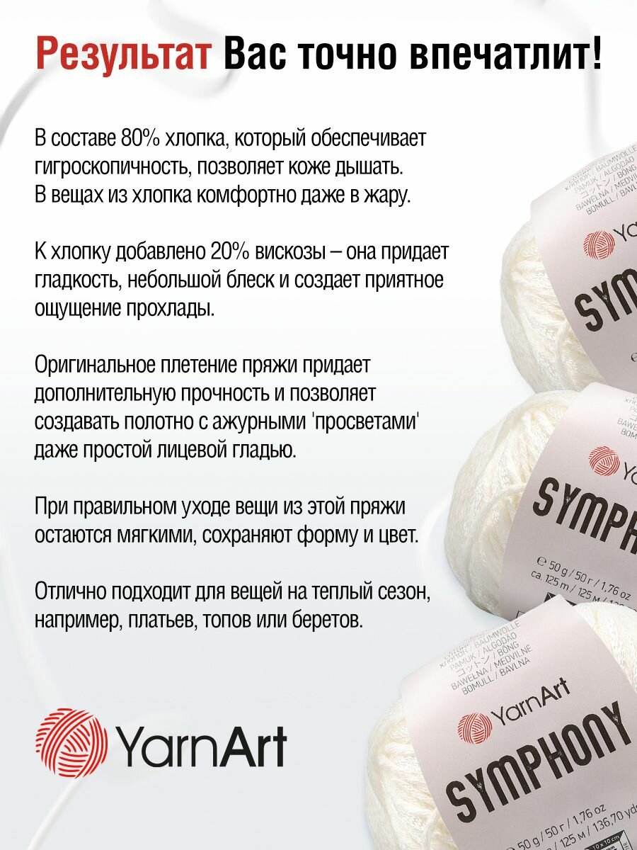 Купить Пряжа Symphony YarnArt, белый - 2101, 80% хлопок, 20% вискоза, 10 мотков, 50 г., 125 м.