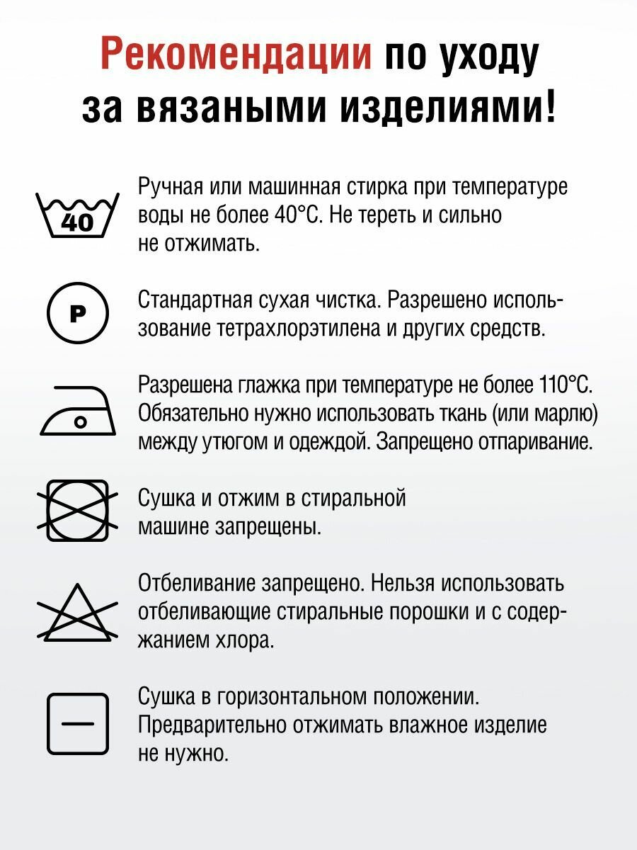 | Плотность вязания для образца 10х10 см | 34 петли х 48 рядов |