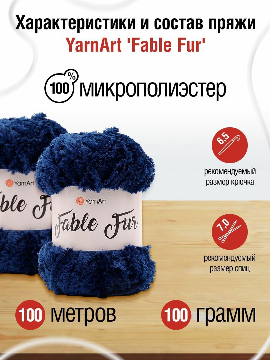 Пряжа YarnArt "Fable Fur" 100 гр 100 м, 100% микрополиэстер, 987 темно-синий, 5 шт