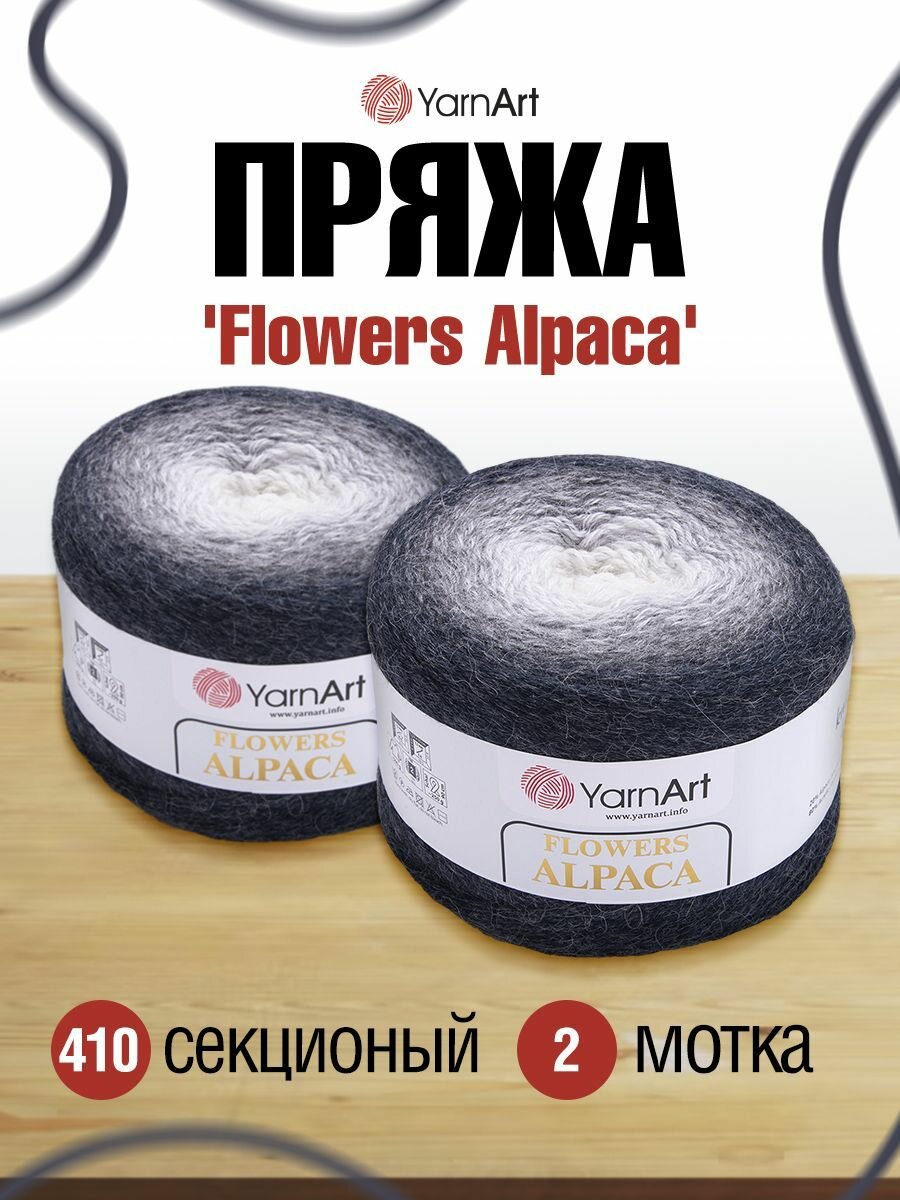 Купить Пряжа YarnArt Flowers Alpaca (ЯрнАрт Фловерс Альпака) Нитки для вязания, 250г, 940м, 20% альпака, 80% акрил, цвет 410 т.маренго-серый-белый, 2шт