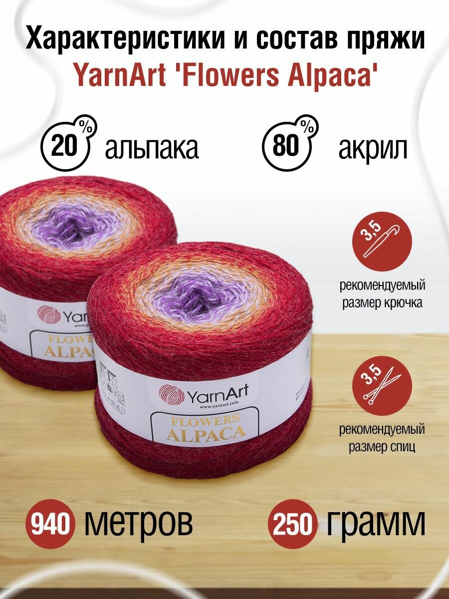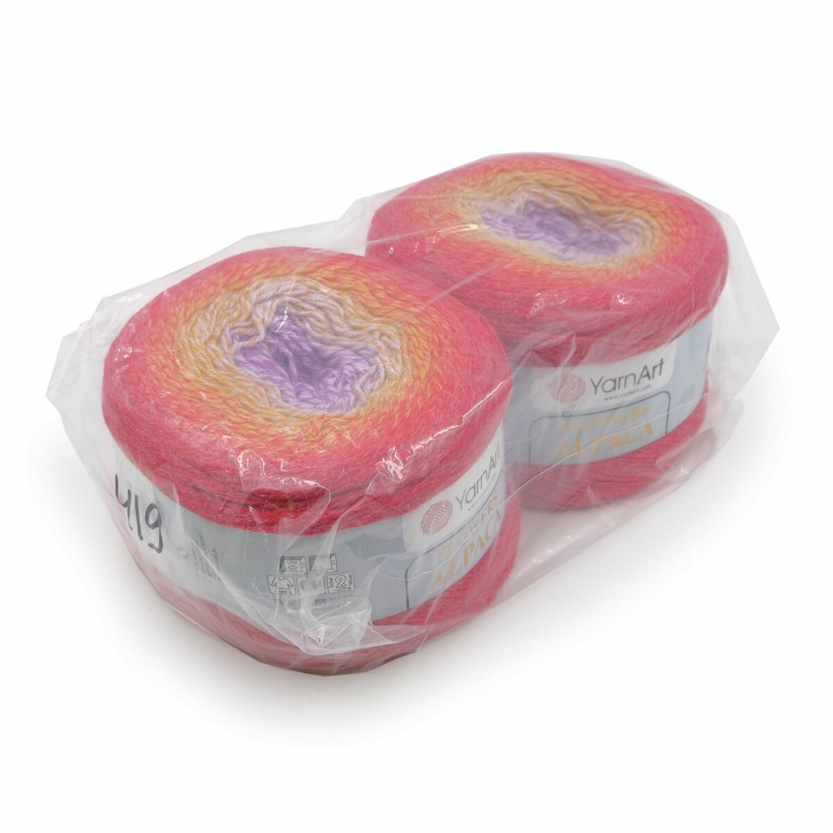 Купить Пряжа Yarnart Flowers alpaca красный-охра-ярко-сиреневый (419), 20%альпака/80%акрил, 940м, 250г, 2шт