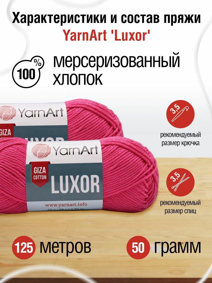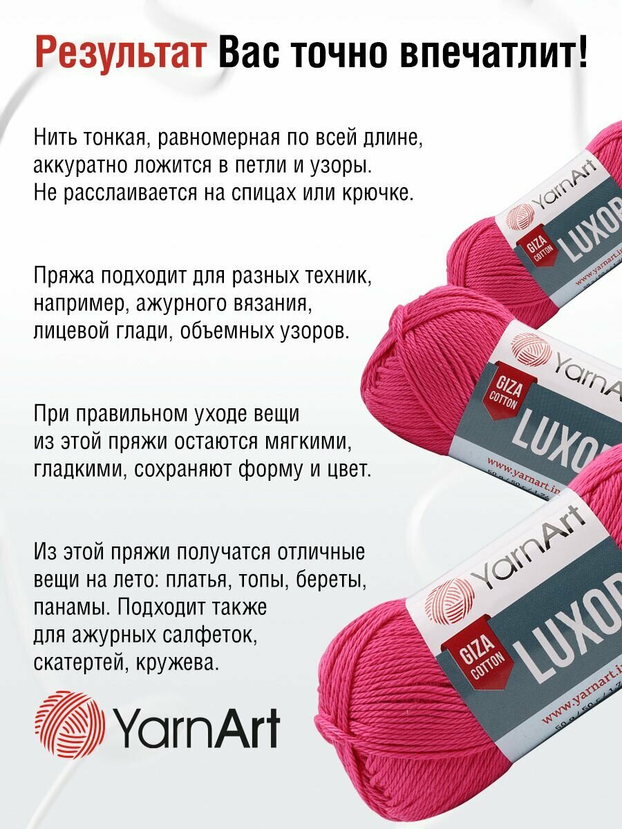 СохранитьПряжа для вязания YarnArt 'Luxor', 50г, 125м (100% мерсеризованный хлопок) (1206 малиновый), 10 мотков интересное: