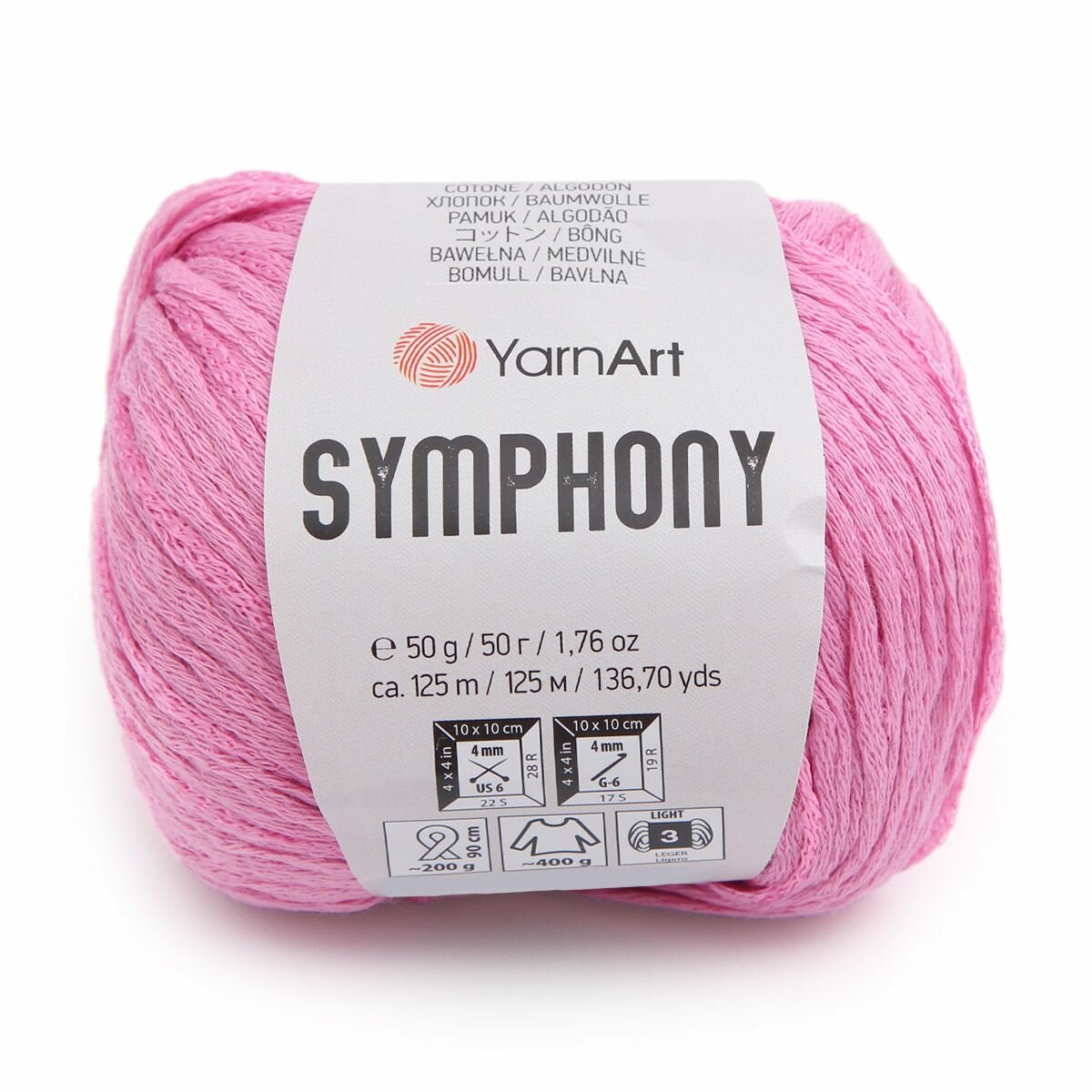 Купить Пряжа для вязания YarnArt 'Symphony' 50гр 125м (80% хлопок, 20% вискоза) (2116 светло-сиреневый), 10 мотков