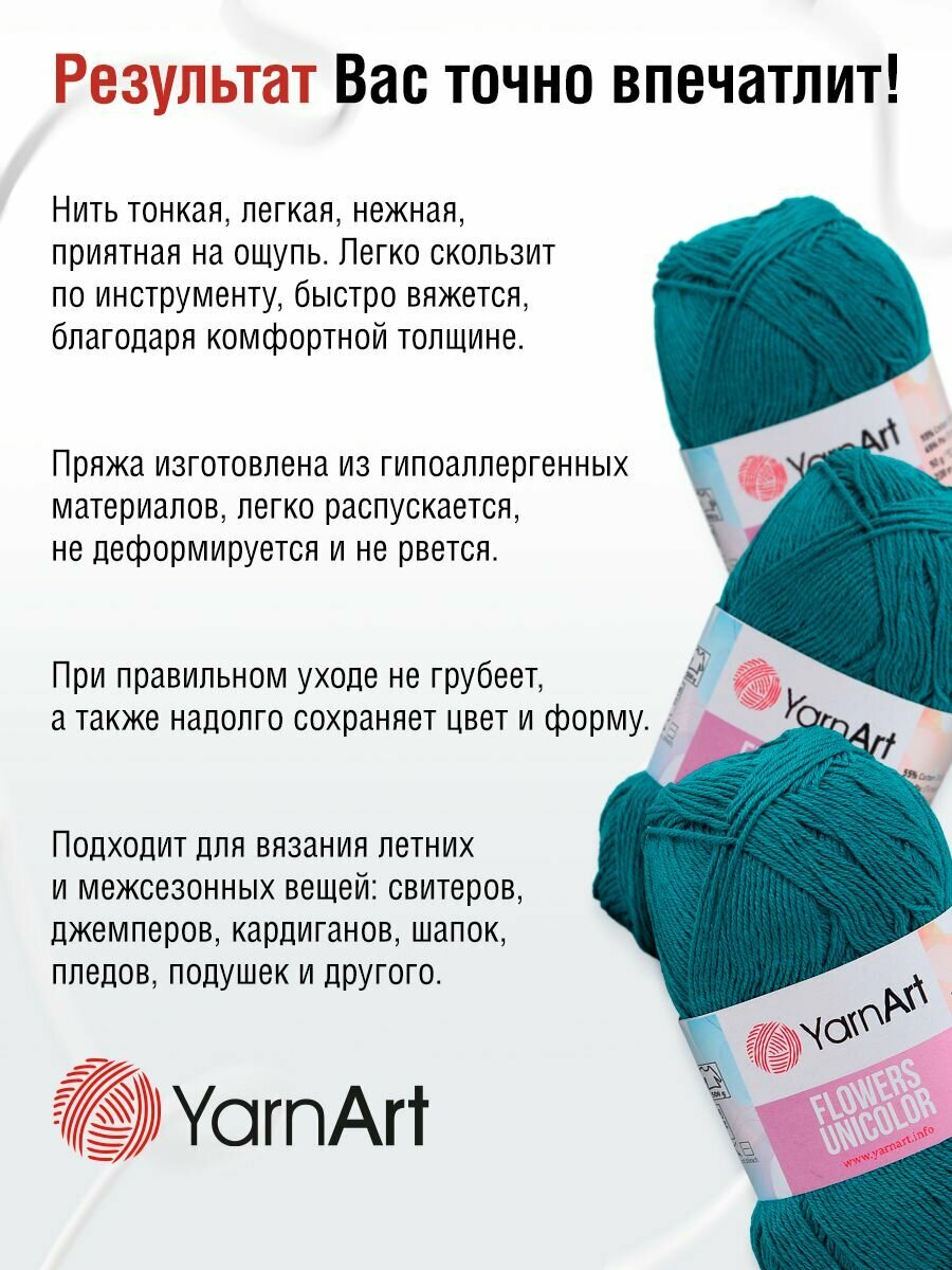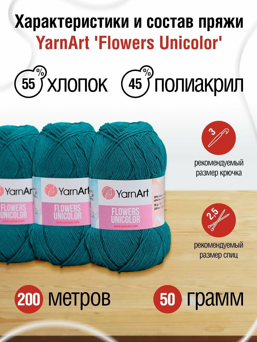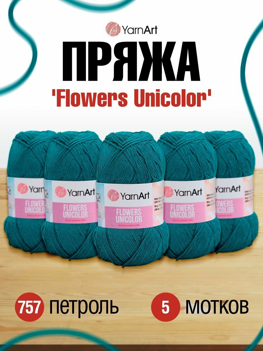 СохранитьПряжа Flowers Unicolor YarnArt, мор.волна - 757, 55% хлопок, 45% акрил, 5 мотков, 50 г., 200 м. интересное: