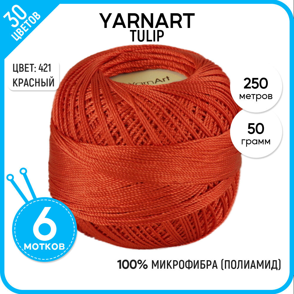 Пряжа для вязания YarnArt 'Tulip' 50г, 250м (100% микрофибра) (421 красный), 6 мотков
