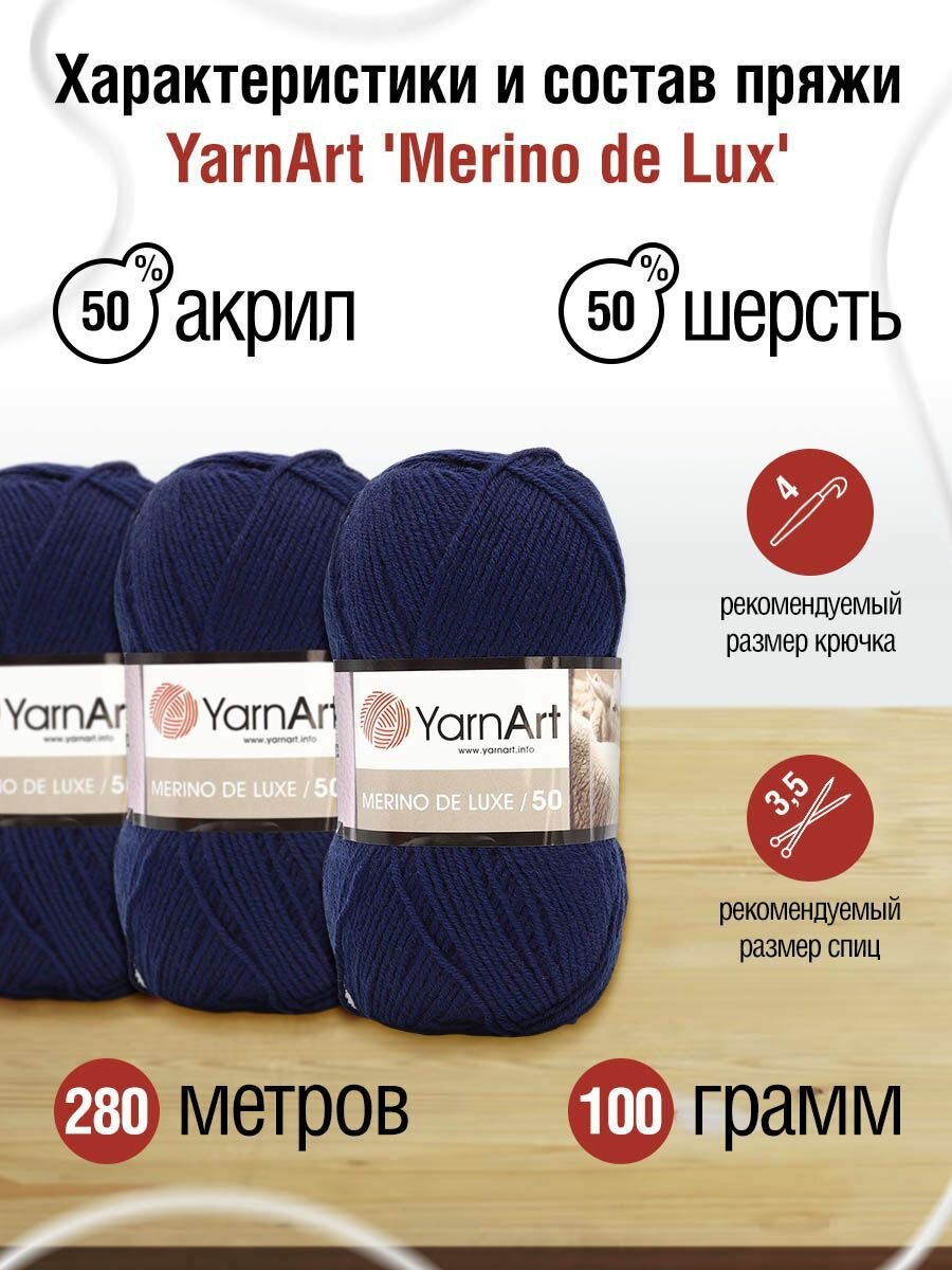 Пряжа MERINO DE LUXE 50 (YarnArt), т. синий - 583, 50% шерсть, 50% акрил, 5 мотков, 100 г, 280 м.