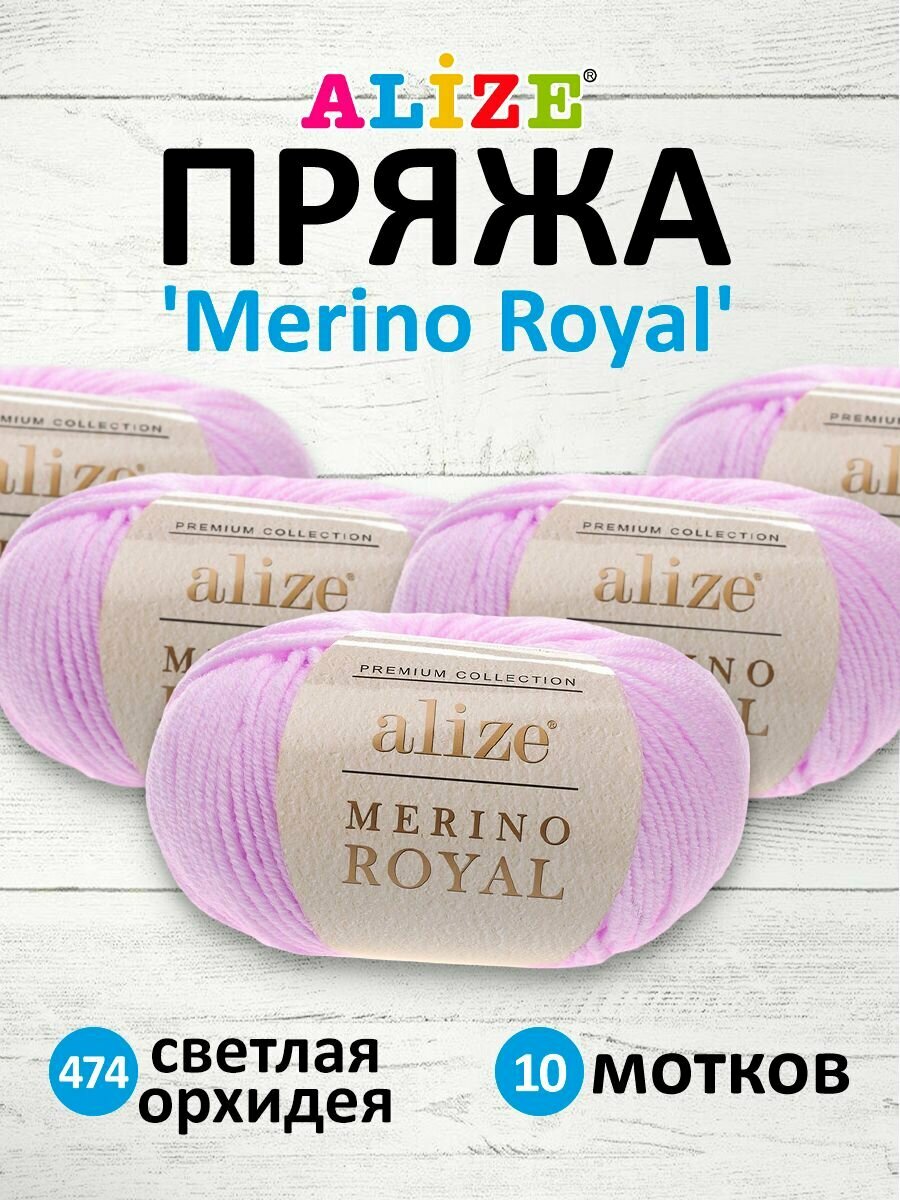 Пряжа для вязания Alize Merino royal (474) светлая орхидея, 50 г, 100 м, 10 штук