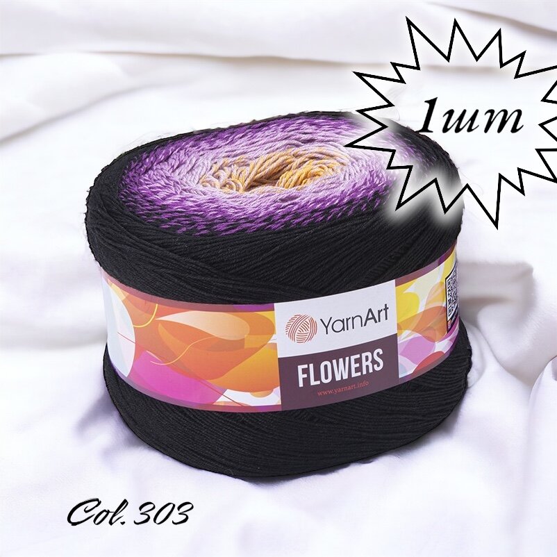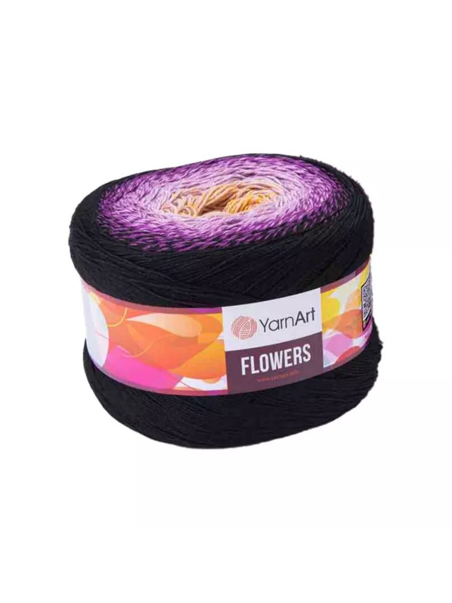 Пряжа YarnArt Flowers чёрный-фиалка-светло-сиреневый-жёлтый (303), 55%хлопок/45%акрил, 1000м, 250г, 1шт