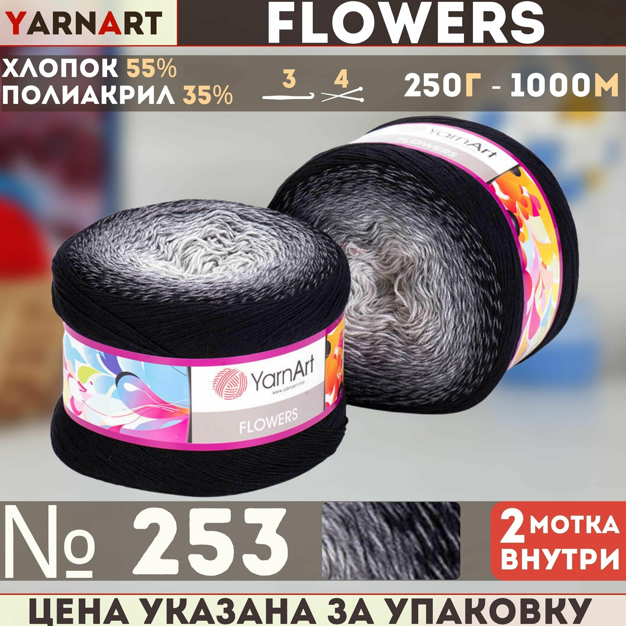 Купить Пряжа YarnArt Flowers черный-серый-белый (253), 55%хлопок/45%акрил, 1000м, 250г, 2шт