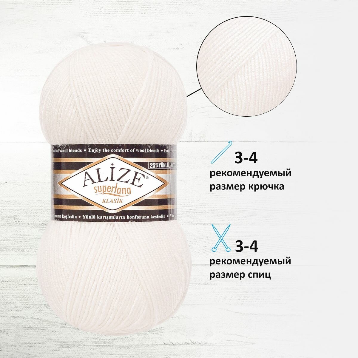 Ниже Вы можете прочитать отзывы на Пряжа Alize Superlana klasik белый (55), 25%шерсть/75%акрил, 280м, 100г, 5шт, ознакомится с подробными характеристиками, посмотреть интересные обзоры и фотографии на Пряжа Alize Superlana klasik белый (55), 25%шерсть/75%акрил, 280м, 100г, 5шт.