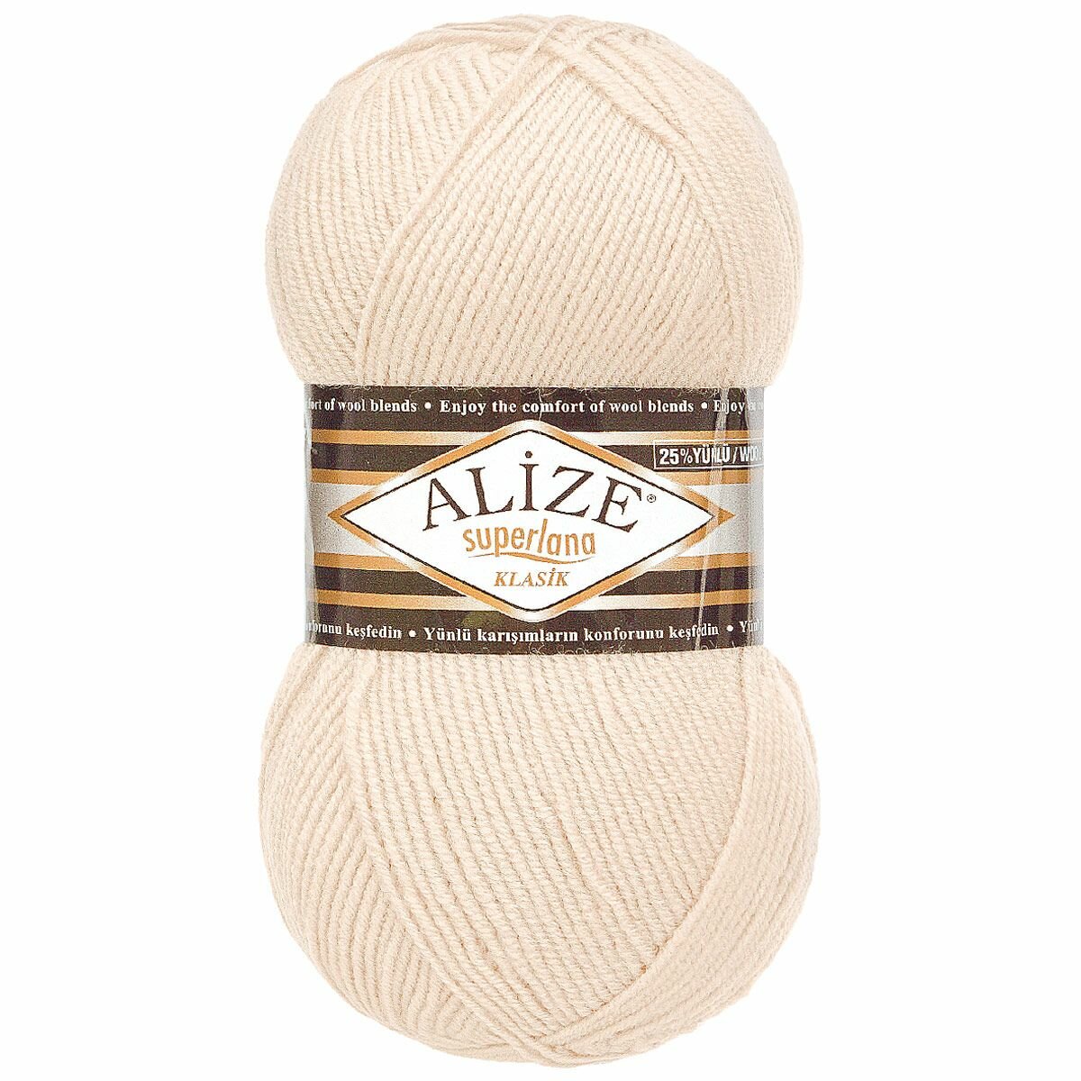 Пряжа Alize Superlana klasik (Ализе Суперлана Классик) - 3 мотка 574 бежевый 25% шерсть, 75% акрил 100г/280м