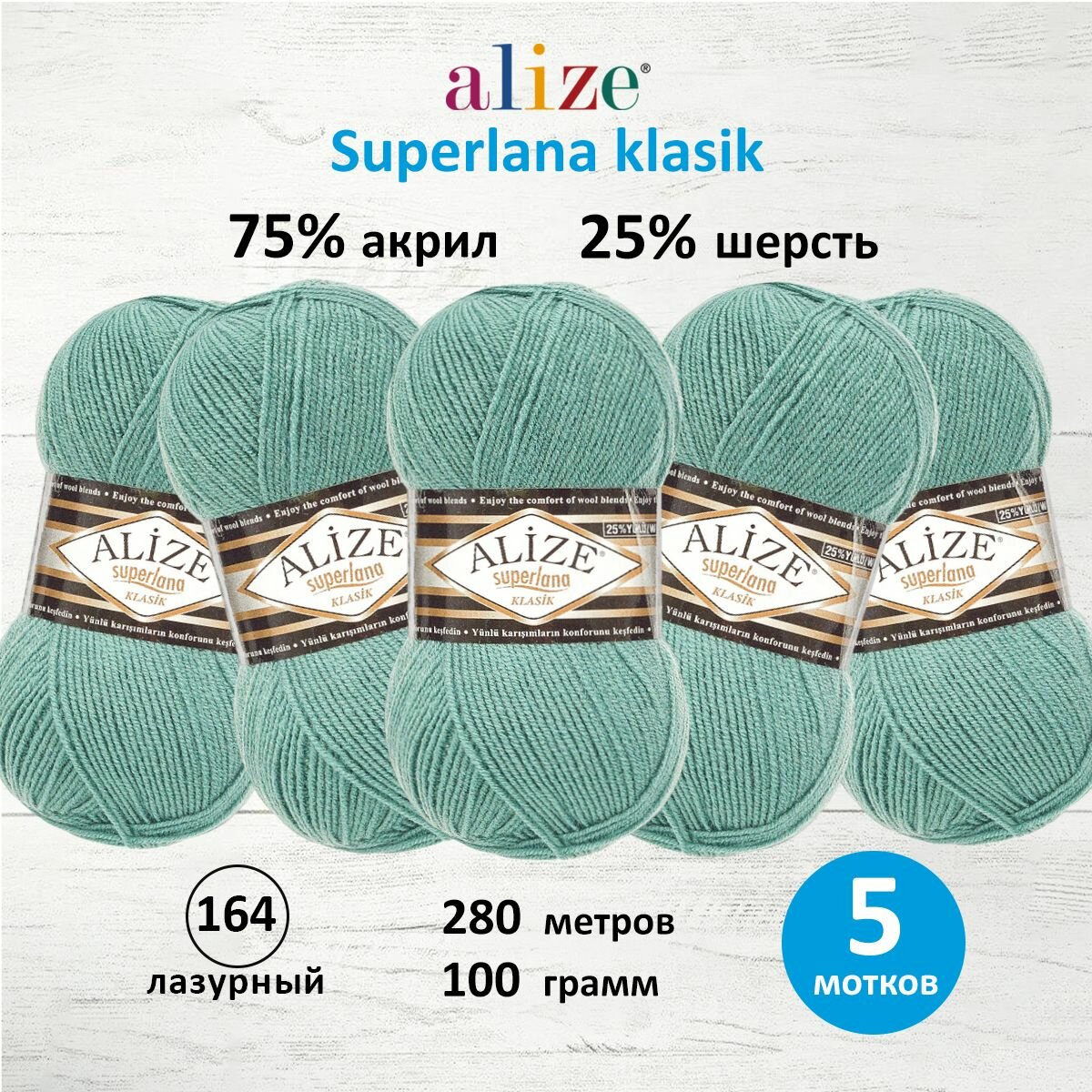 Купить Пряжа Alize Superlana klasik лазурный (164), 25%шерсть/75%акрил, 280м, 100г, 5шт