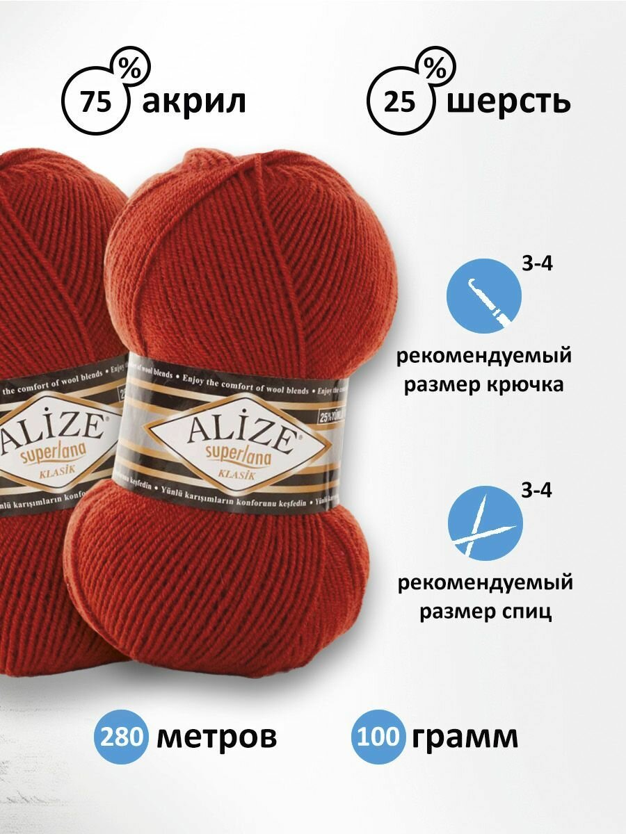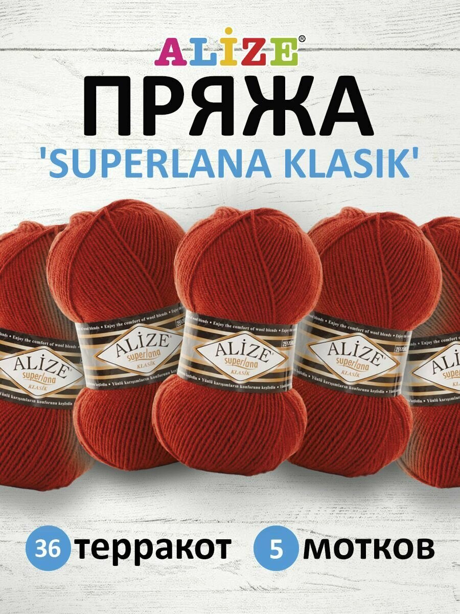 Купить Пряжа Alize Superlana klasik терракот (36), 25%шерсть/75%акрил, 280м, 100г, 5шт