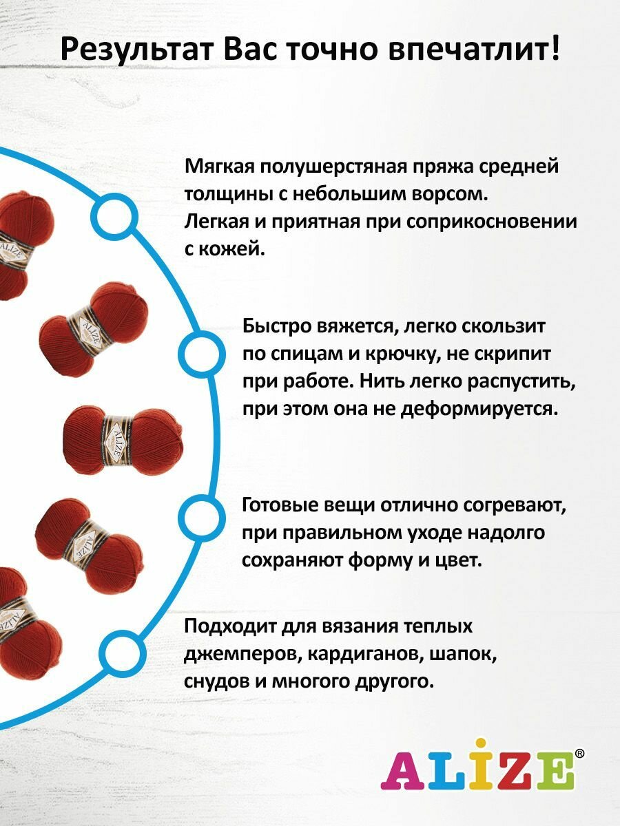 СохранитьПряжа Alize Superlana klasik терракот (36), 25%шерсть/75%акрил, 280м, 100г, 5шт интересное: