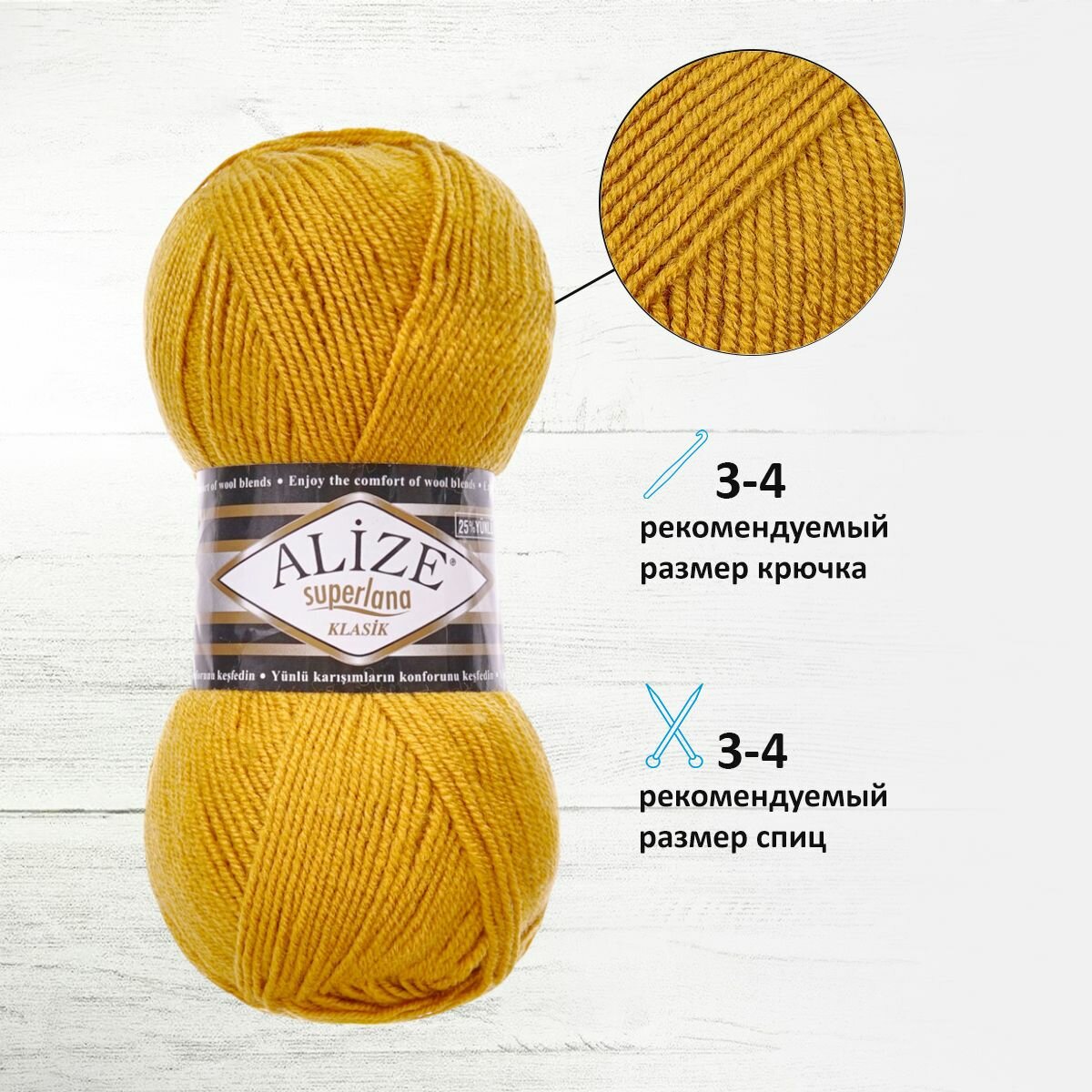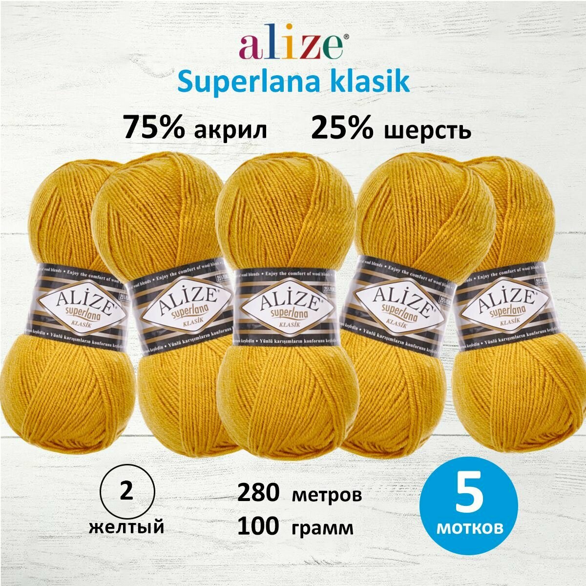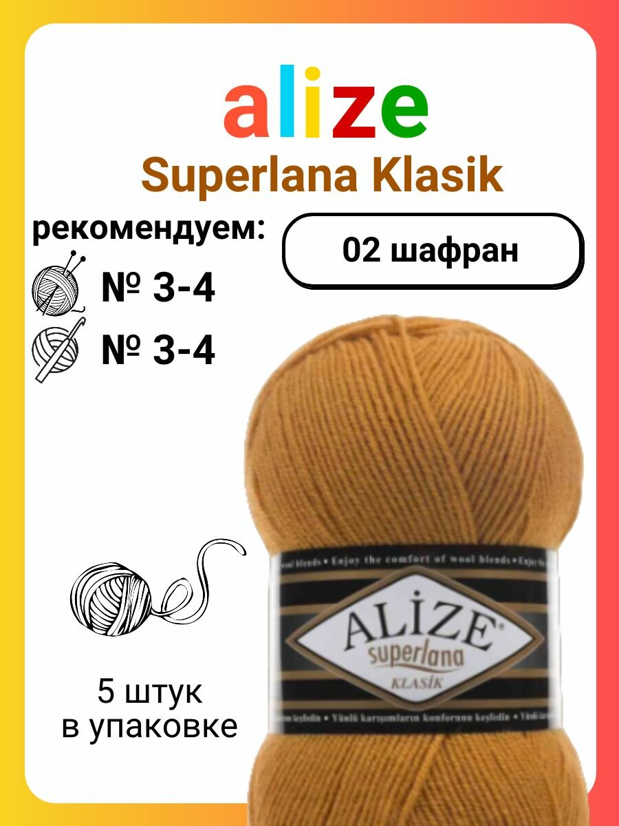 Купить Пряжа Alize Superlana klasik шафран (02), 25%шерсть/75%акрил, 280м, 100г, 5шт