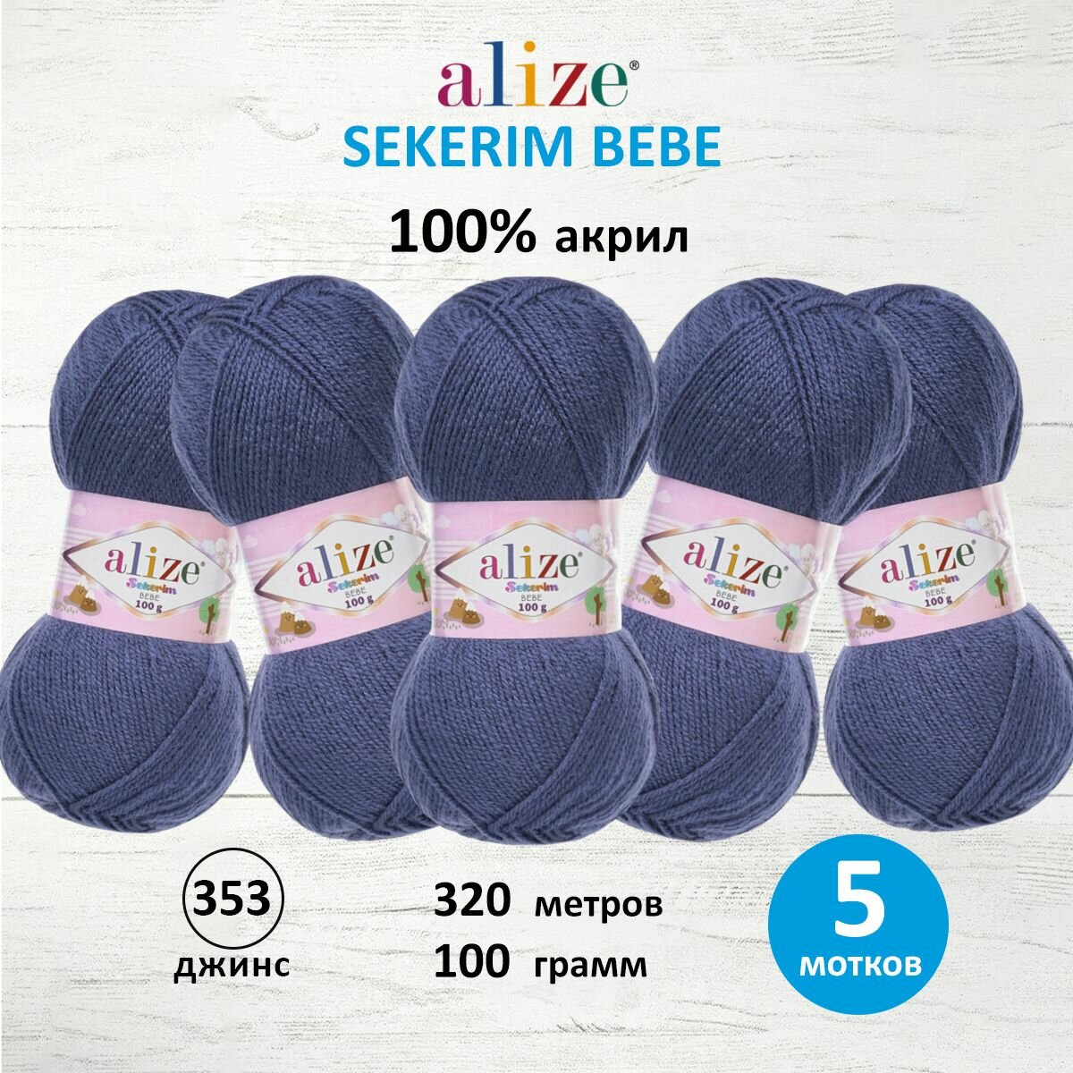 Пряжа для вязания ALIZE 'SEKERIM BEBE' 100 г, 320 м (100% акрил) (353 джинс), 5 мотков